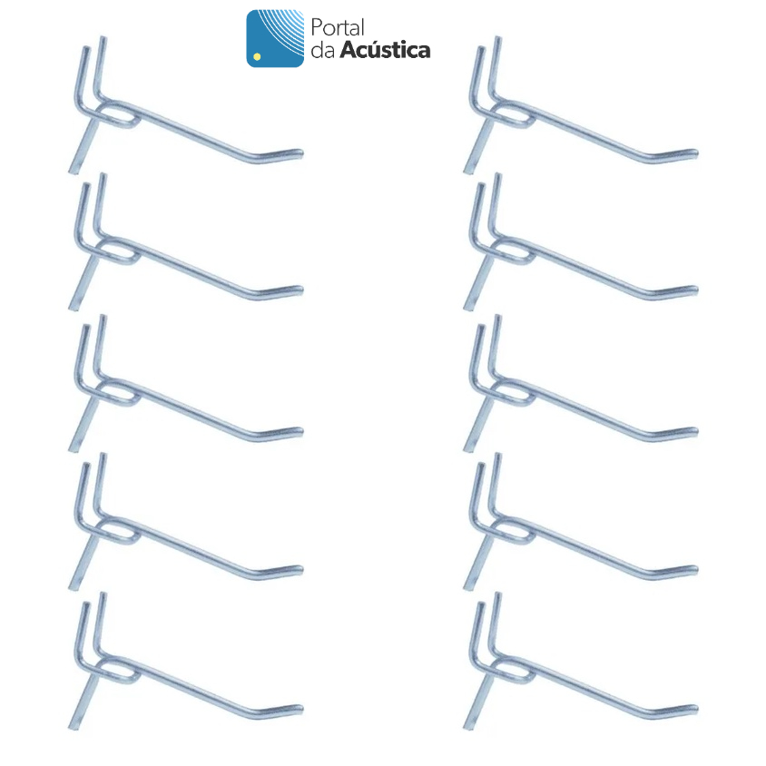 Kit Chapa Perfurada Reta Pegboard Eucatex Cor Branco Glacial 120 x 60 cm + 10 Ganchos de 10cm