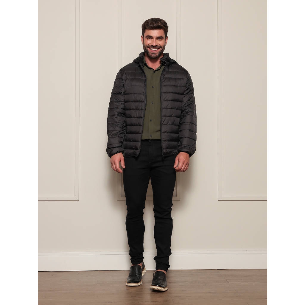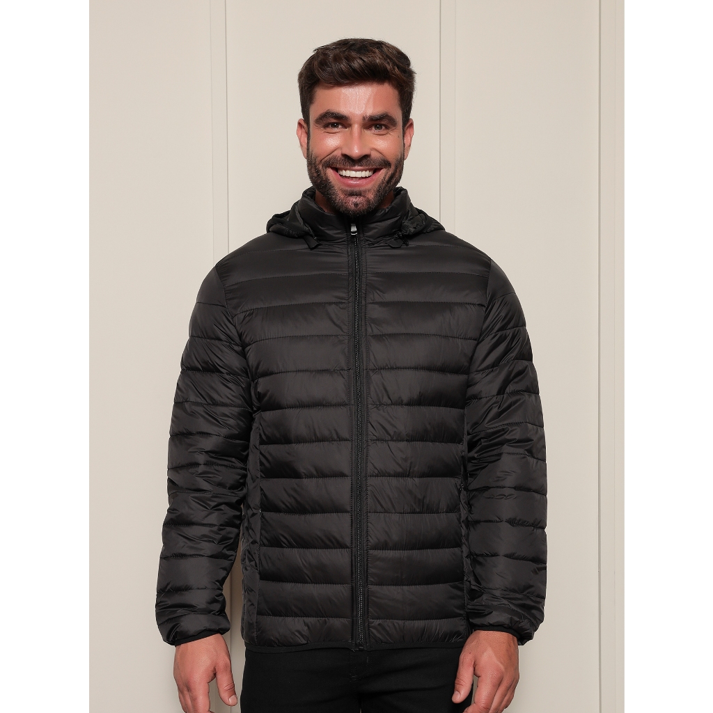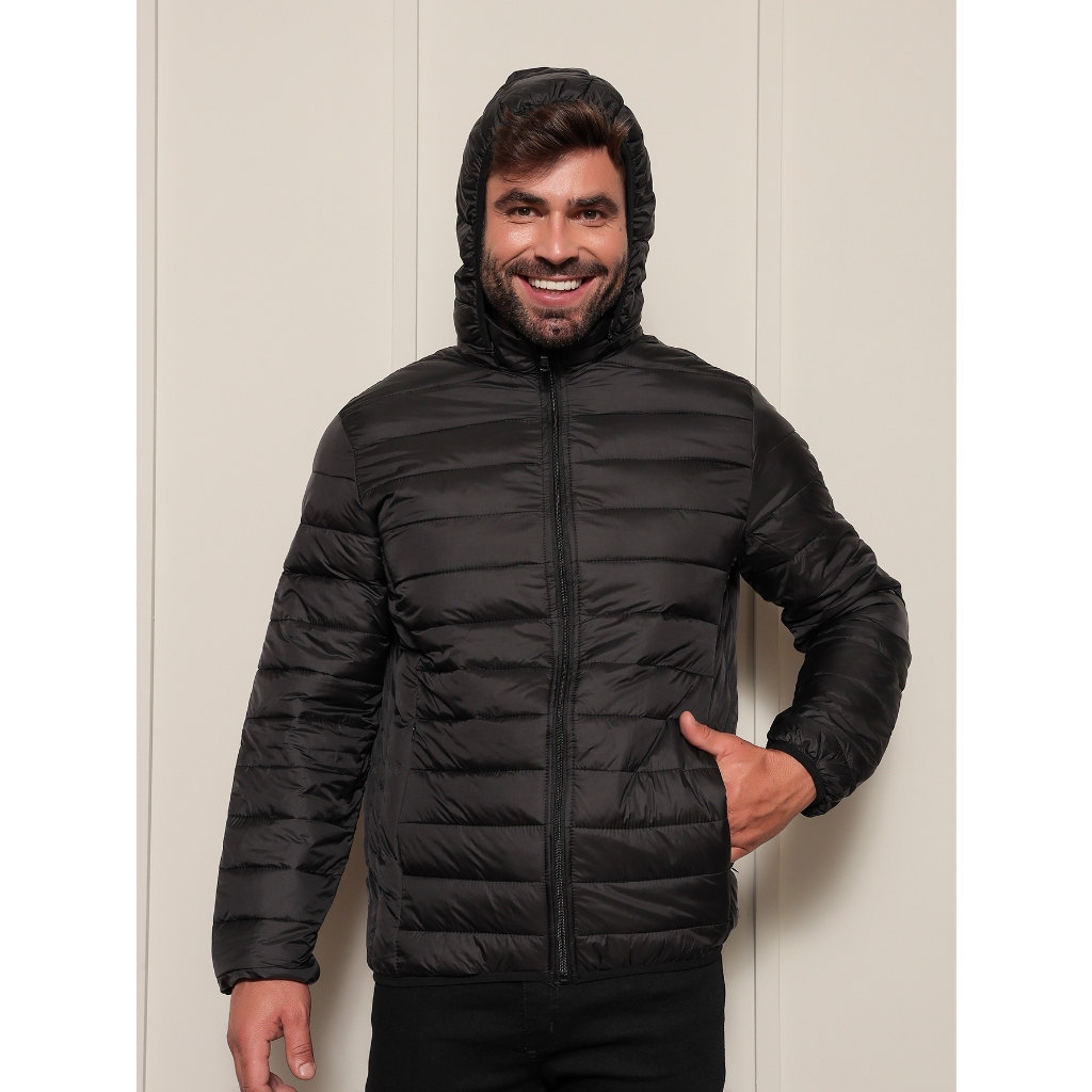 Jaqueta Casaco Bobojaco Puffer Masculino Impermeável Lisa Preta com Capuz para Inverno