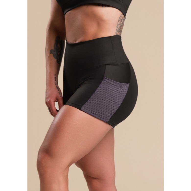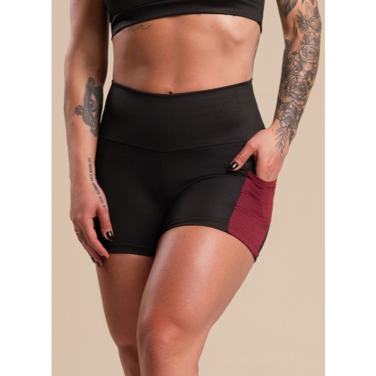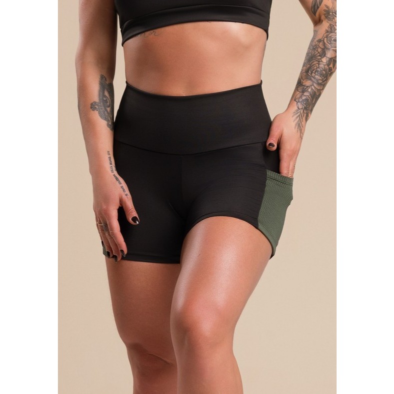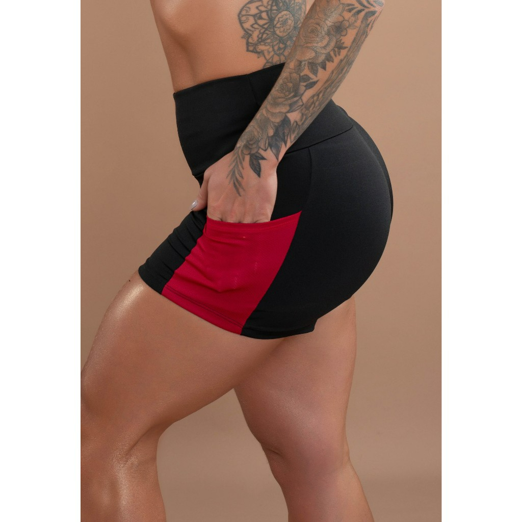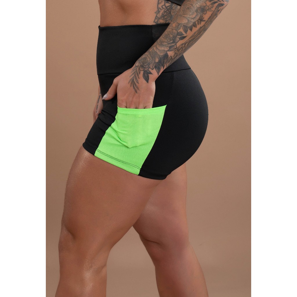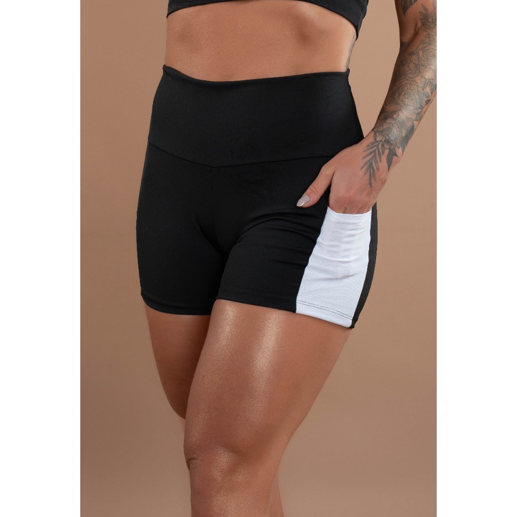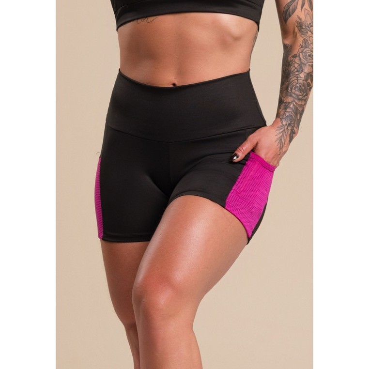 Short Fitness Curto Cintura Alta Feminino Com Bolso Tela Lateral Academia Treino Corrida F7 NEW STYLE