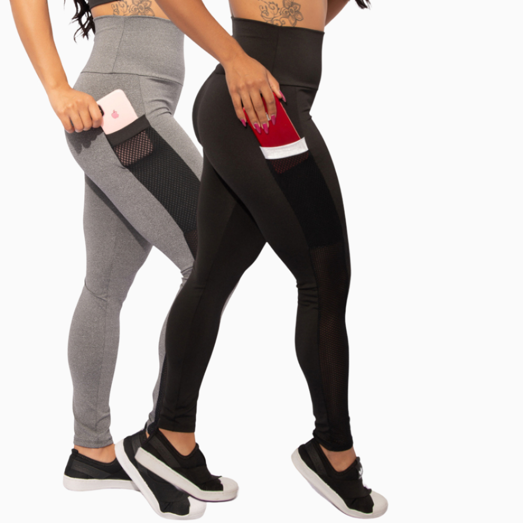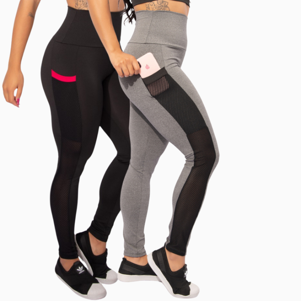 Kit 2 Calça Legging Com Bolso Newstyle Fitness Academia Feminina Cintura Alta