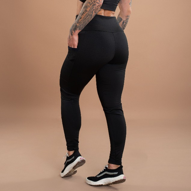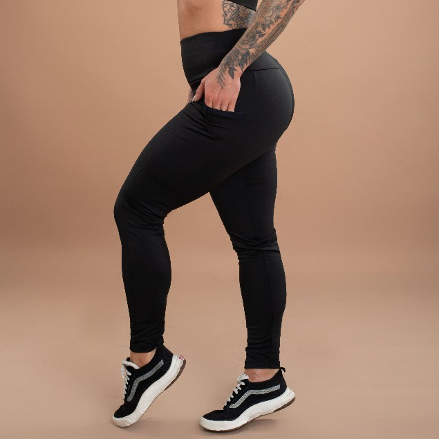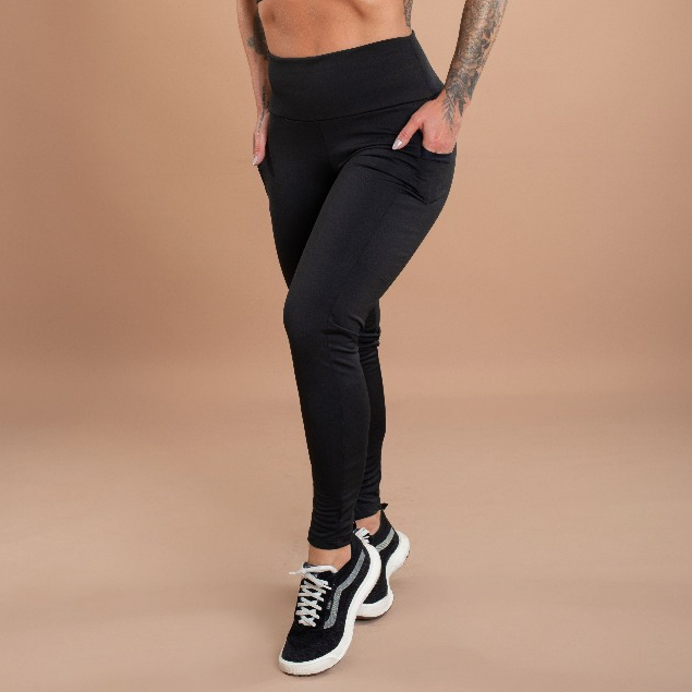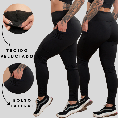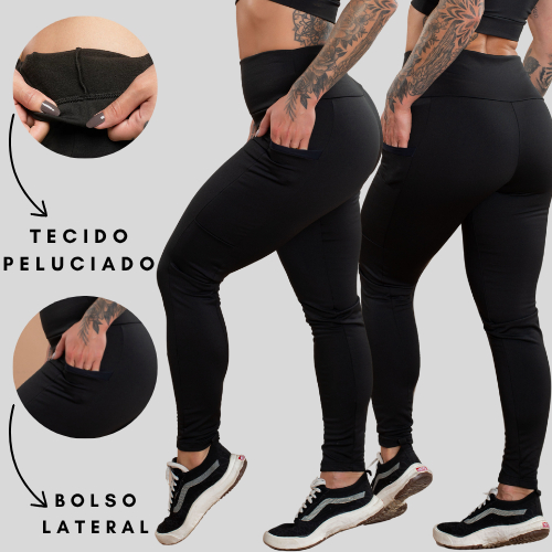 Calça Peluciada Com Bolso Legging Cintura Alta Térmica Flanelada Lisa Inverno Felpuda Academia Moda Casual F7 NEW STYLE