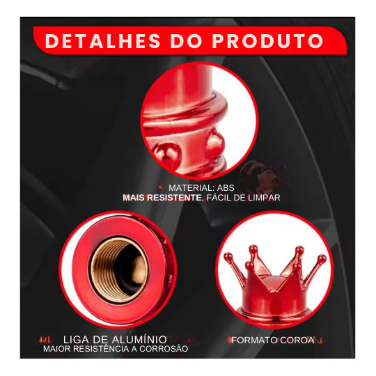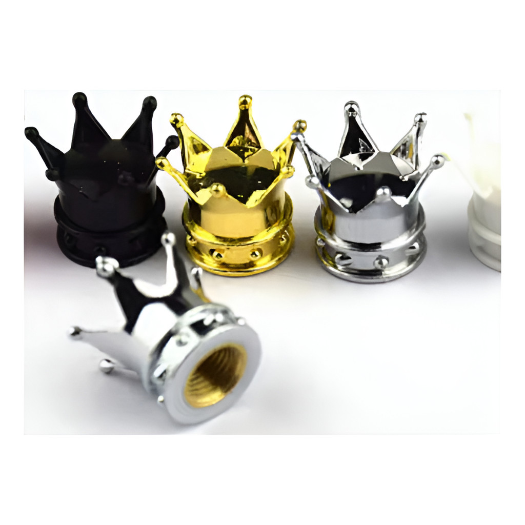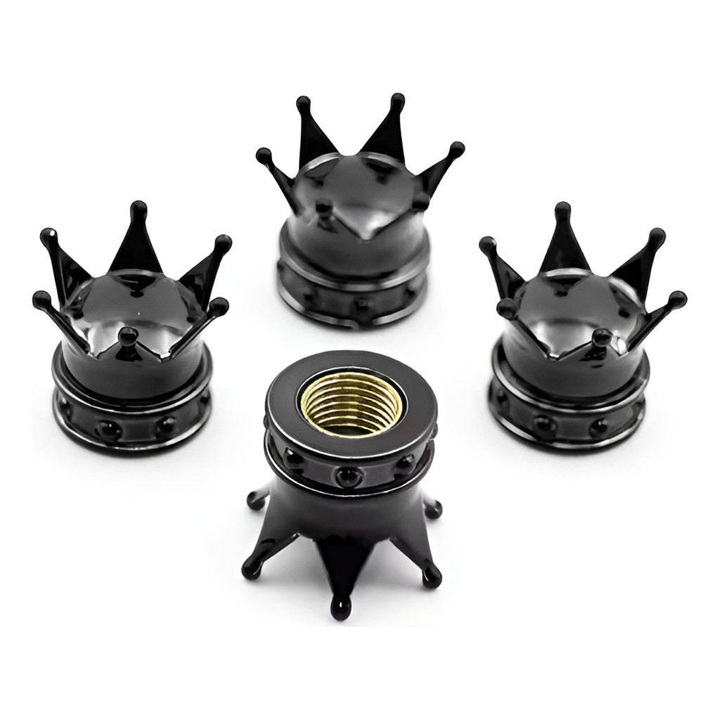 Kit 4 Tampas De Válvula Bico Pneu Formato Coroa Moto Carro