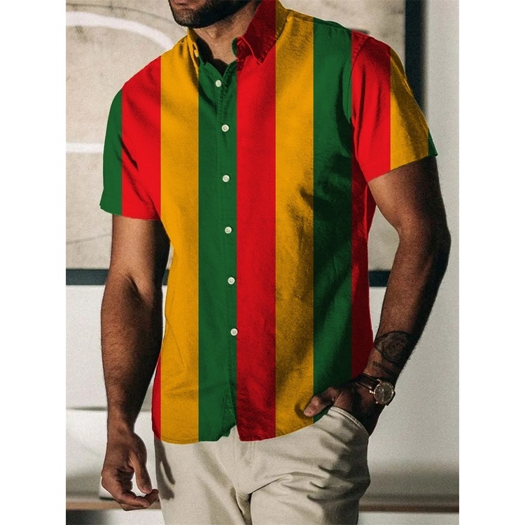 Camisa Havaiana De Verão Vintage Para Homens Manga Curta Camisas De Listras Impressas De Praia De Botão Único