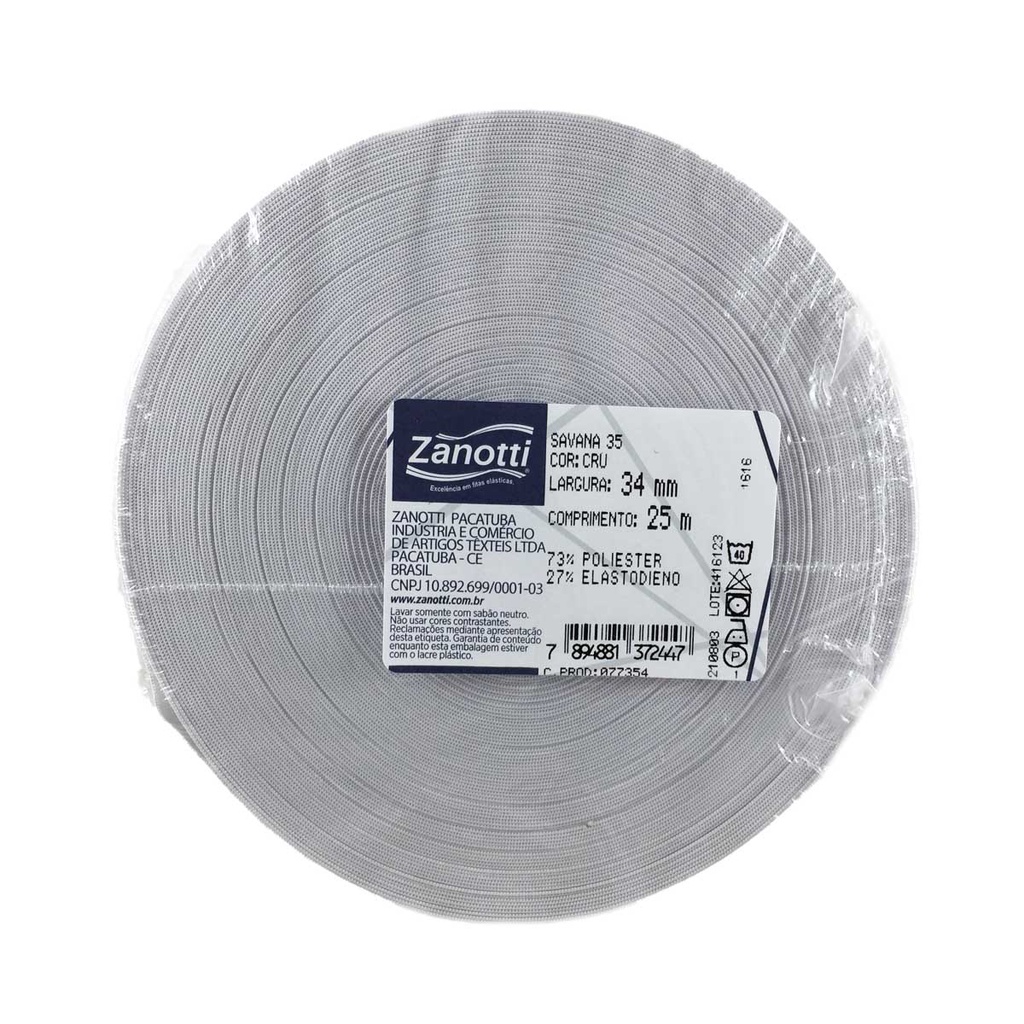 Elástico Zanotti Savana Branco Embutir Chato Costura Rolo C/25 metros - Diversas larguras