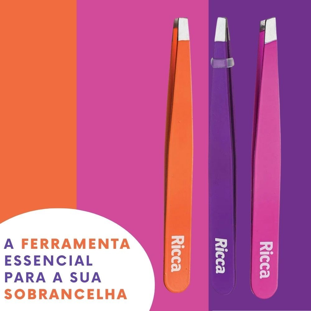 Pinça de Sobrancelha em Aço Inox Cores Sortidas Ricca