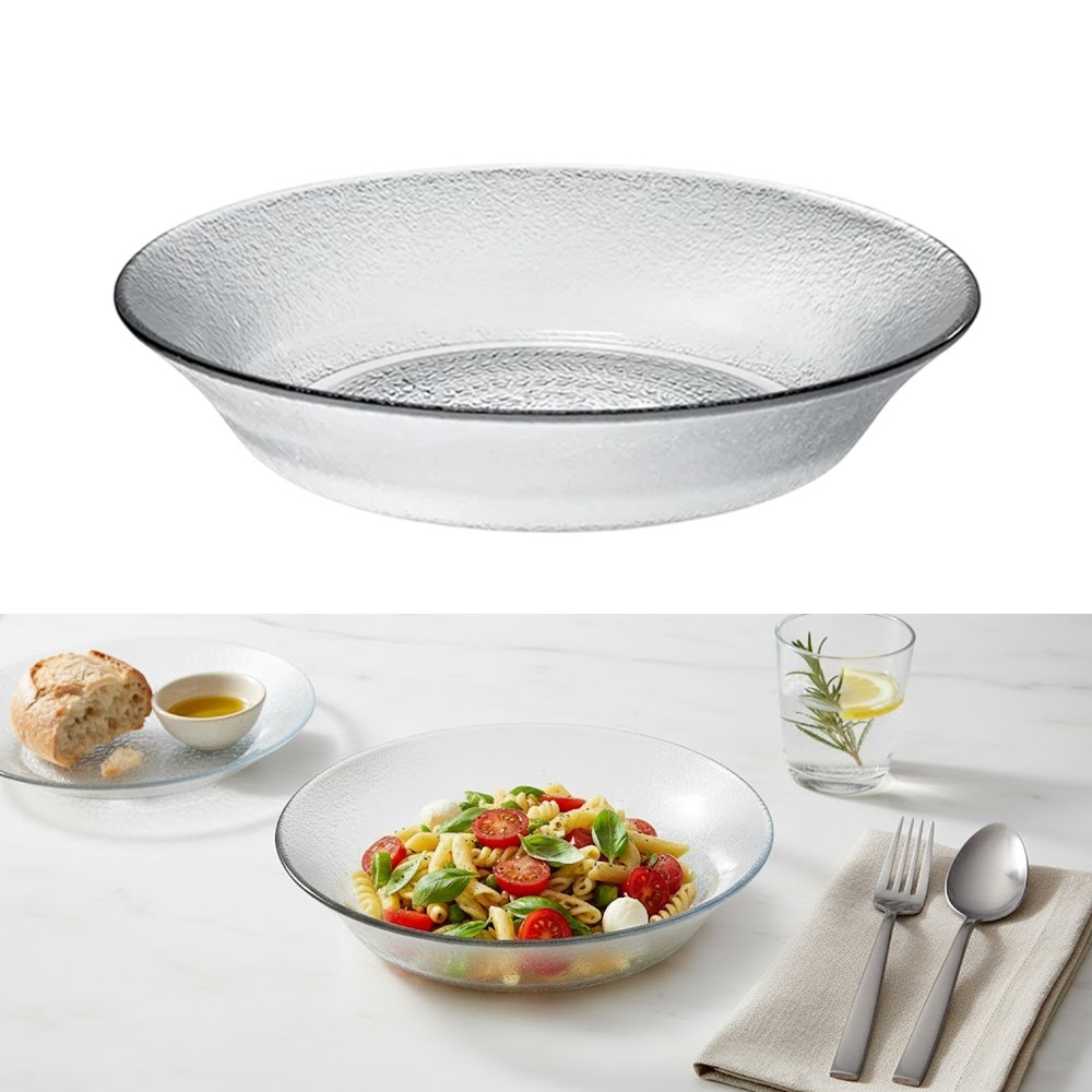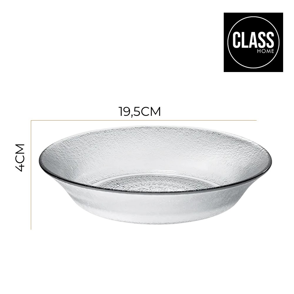 Jogo 4 Prato Fundo de Vidro Acquamarine Transparente 19,5cm Class Home