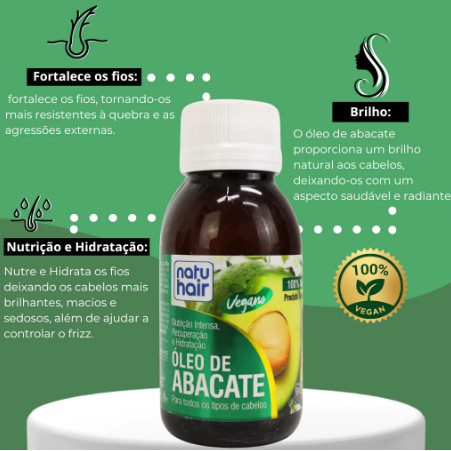 Óleo Capilar de Abacate Hidratação Profunda Brilho Suavidade Antifrizz Crescimento 60ml - Natuhair