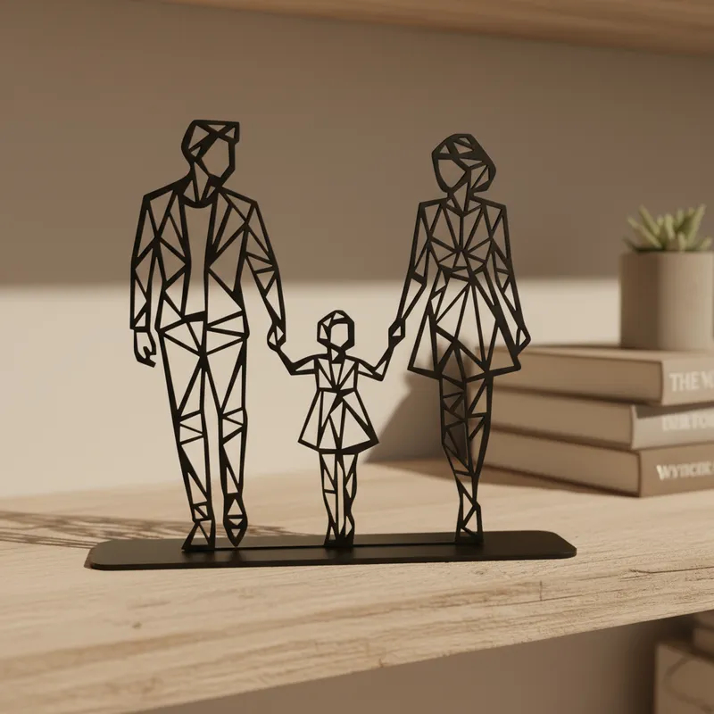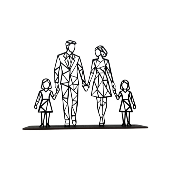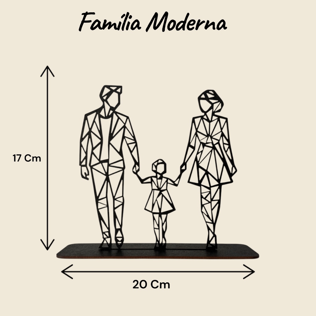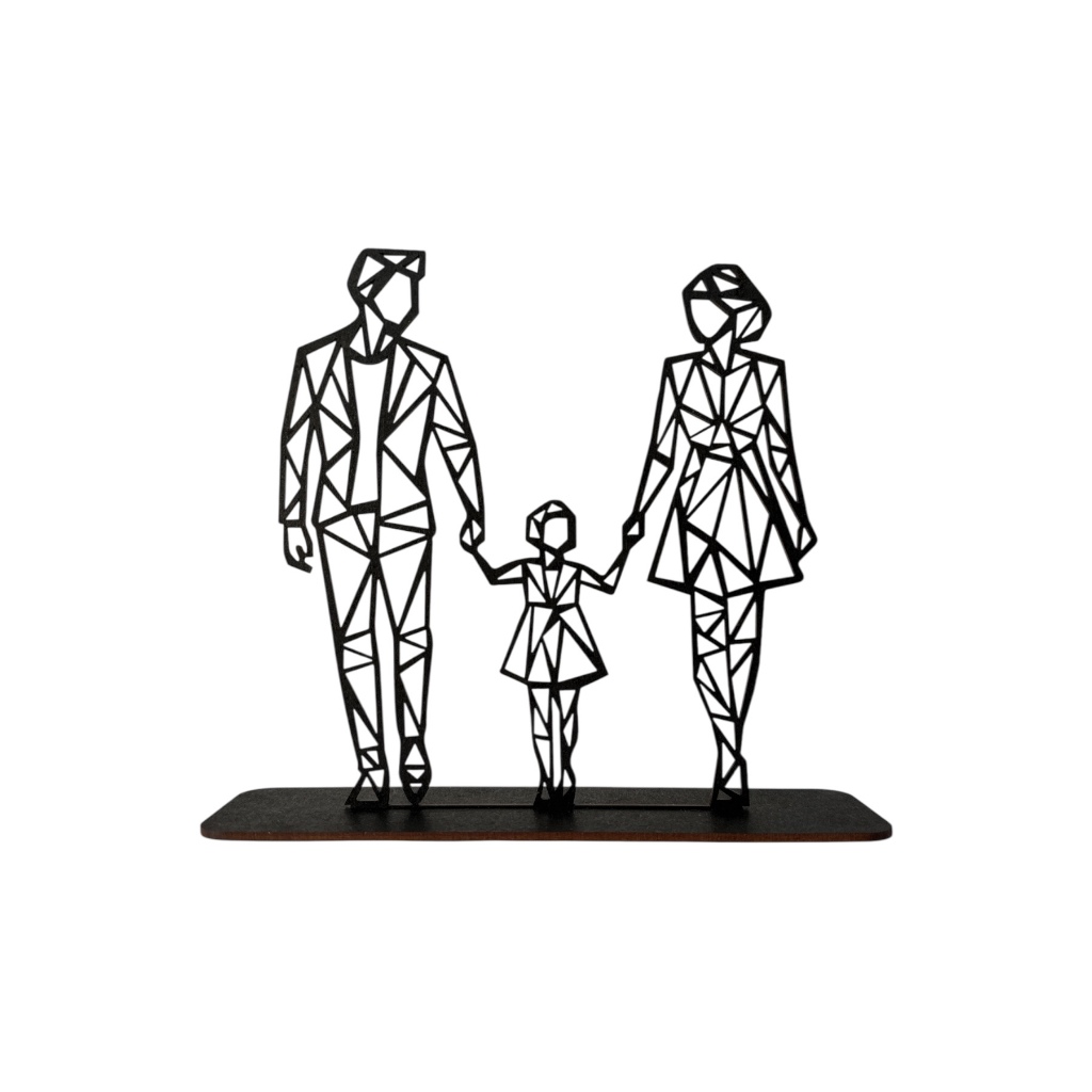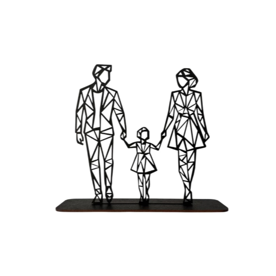 Escultura Família Casal com Filha Geométrico em MDF Preto
