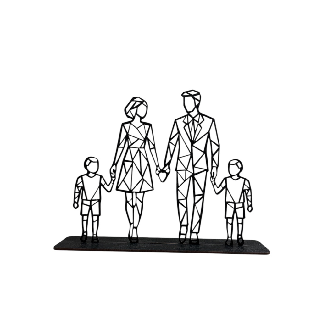 Casal com Dois Filhos Geométrico em MDF Preto – Peça Decorativa Contemporânea