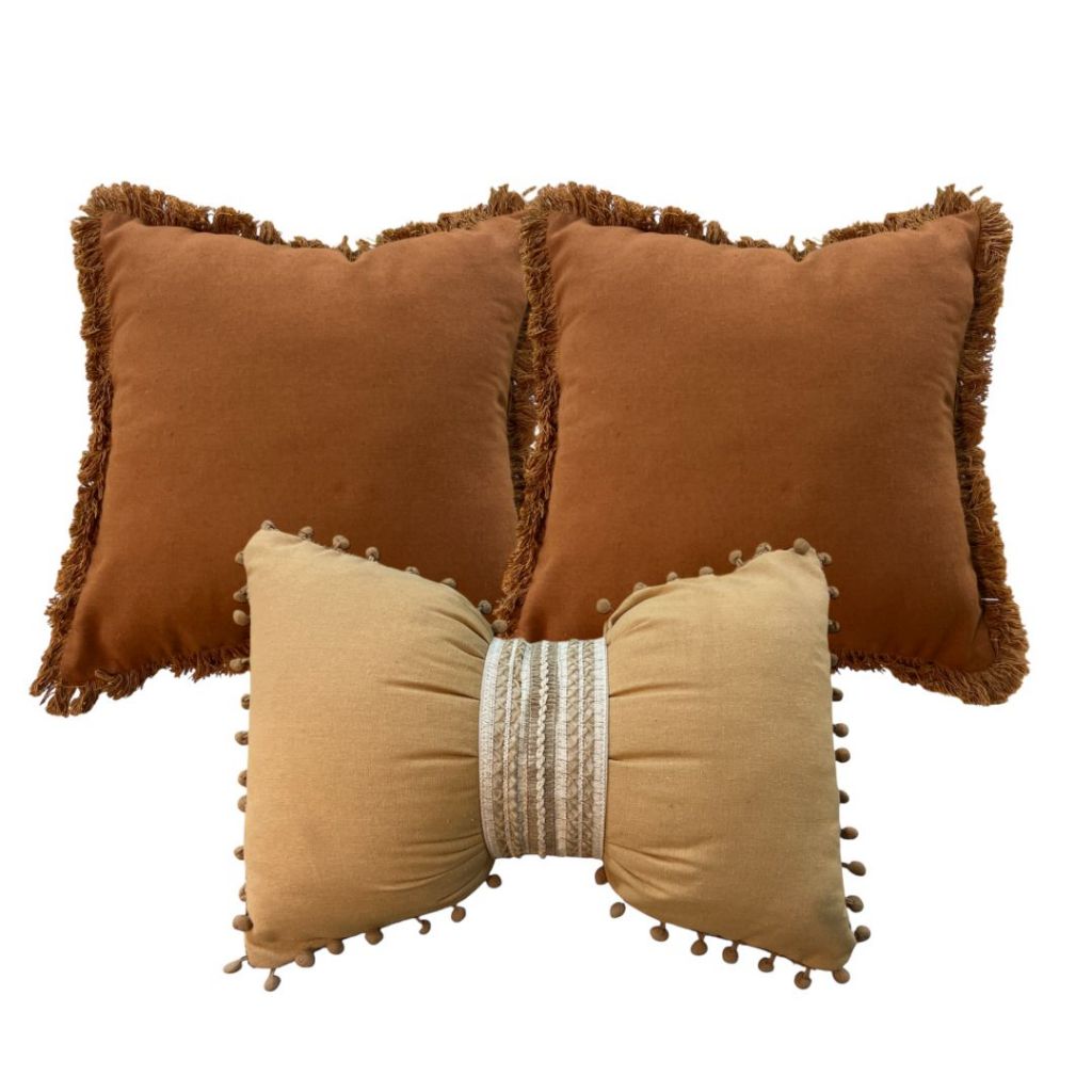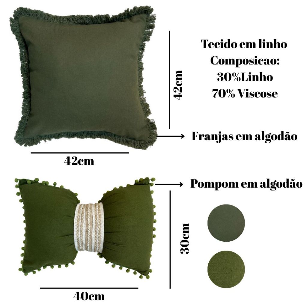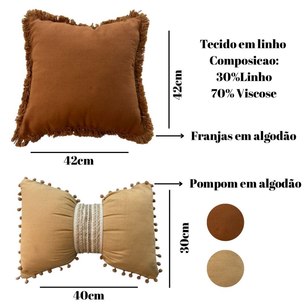 Kit Com 2 Almofadas 42x42 + Almofada Formato de Laço Baguete Estilo Boho Chic