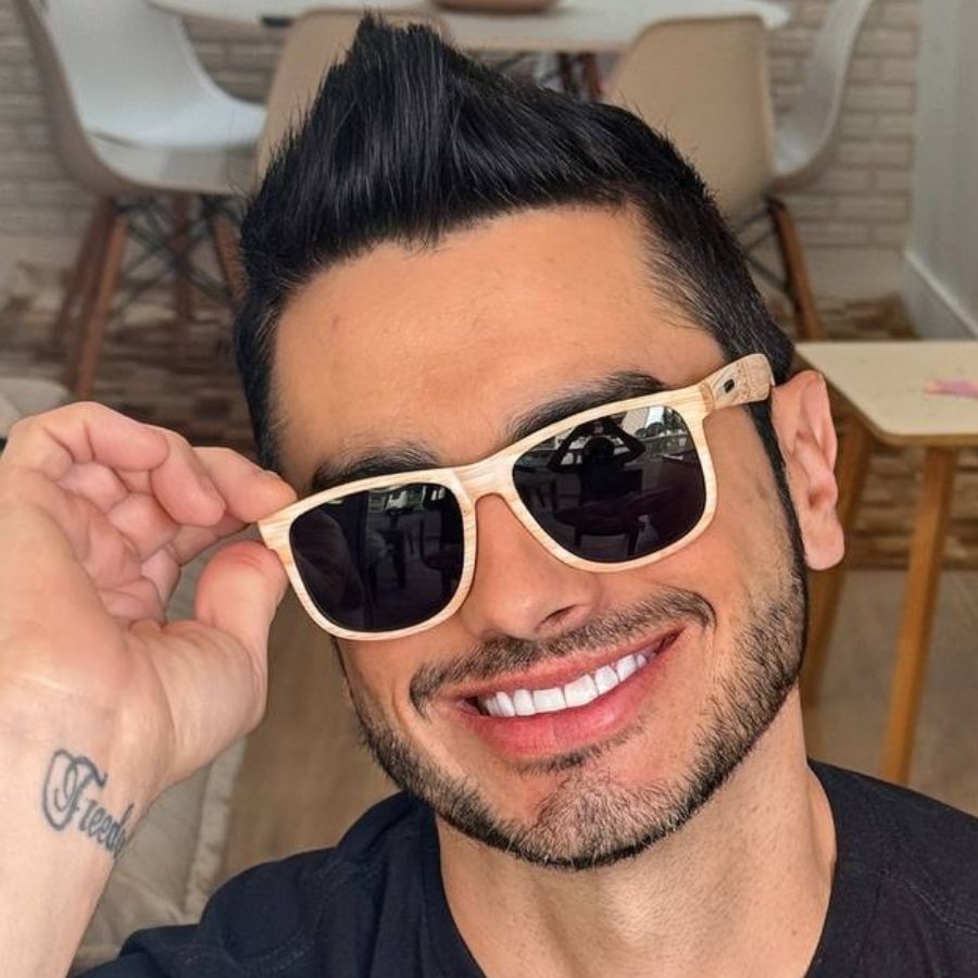 Oculos Redondo de Sol Polarizado Lentes Proteção Oval Haste Bambu Masculino Feminino Lançamento