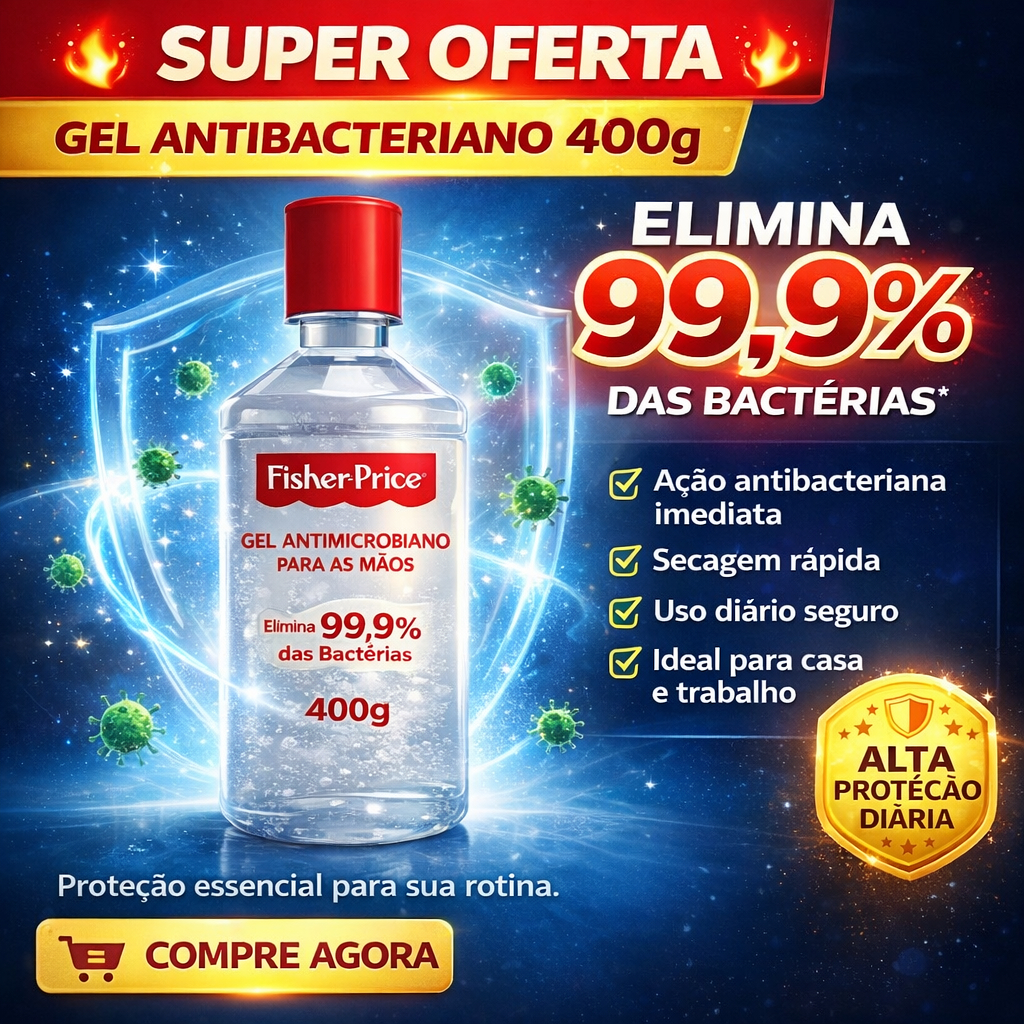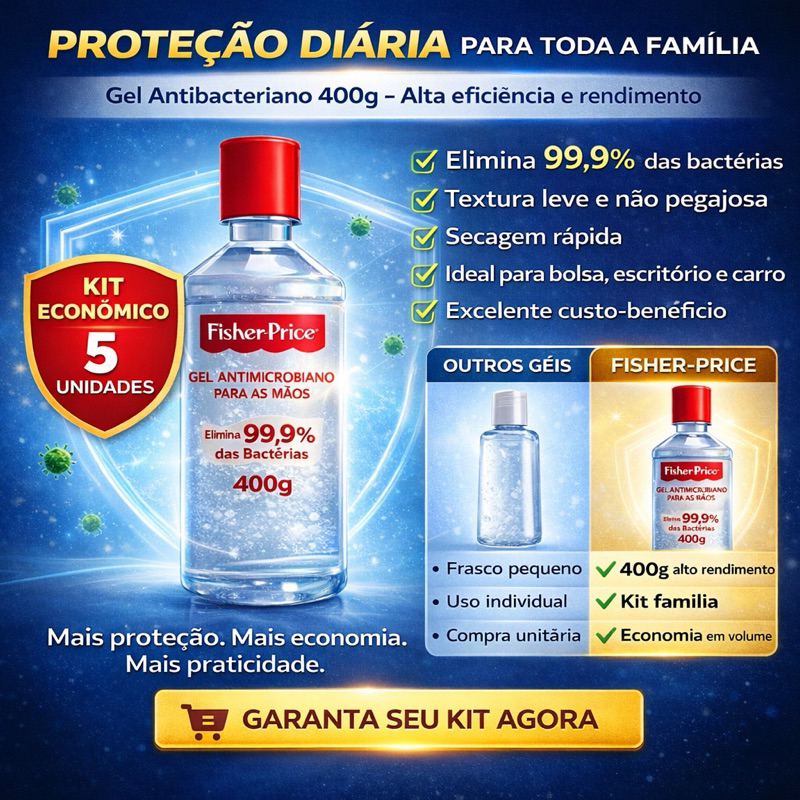 Kit com 5 Gel Antibacteriano 400gr cada | elimina 99,9% bacterias