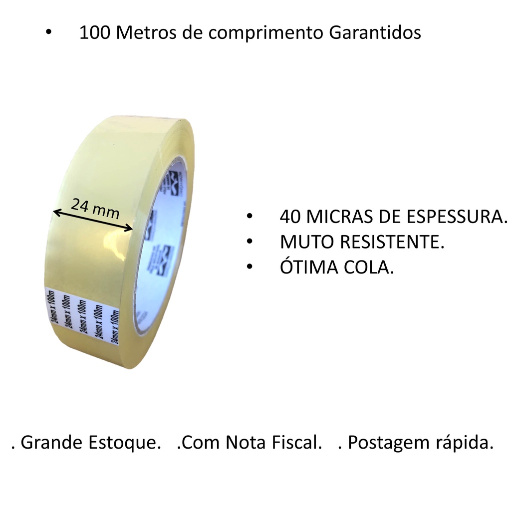 Fita adesiva transparente Larga 24x100 - Embalar Caixa Resistente - 01 rolo