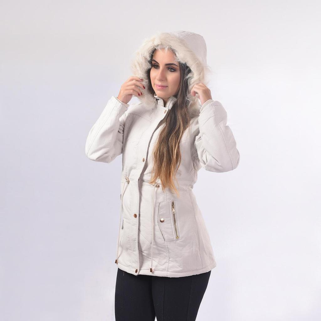 Parka de Sarja PROMOÇÃO Feminina Forrada Peluciada Grossa com Capuz Pelinhos!