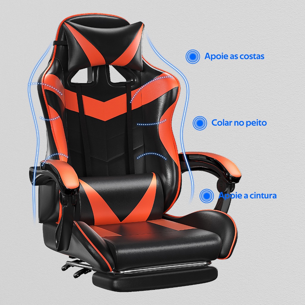 Cadeira Escritório Gamer Ergonômica Reclinável Confortável Com Rodinha E Apoio Para Os Pés-F19