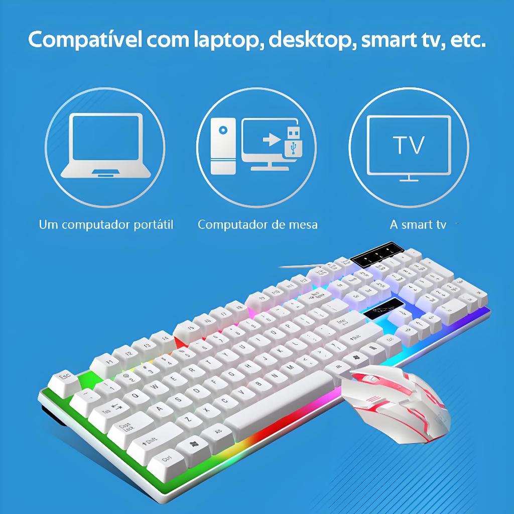 Kit Teclado Semi Mecânico + Mouse Gamer 3200dpi Rgb Led -H8
