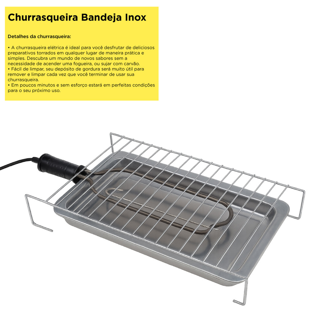 Churrasqueira Elétrica Grill Portátil Bandeja Inox
