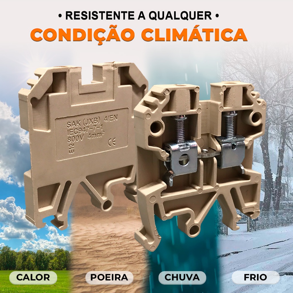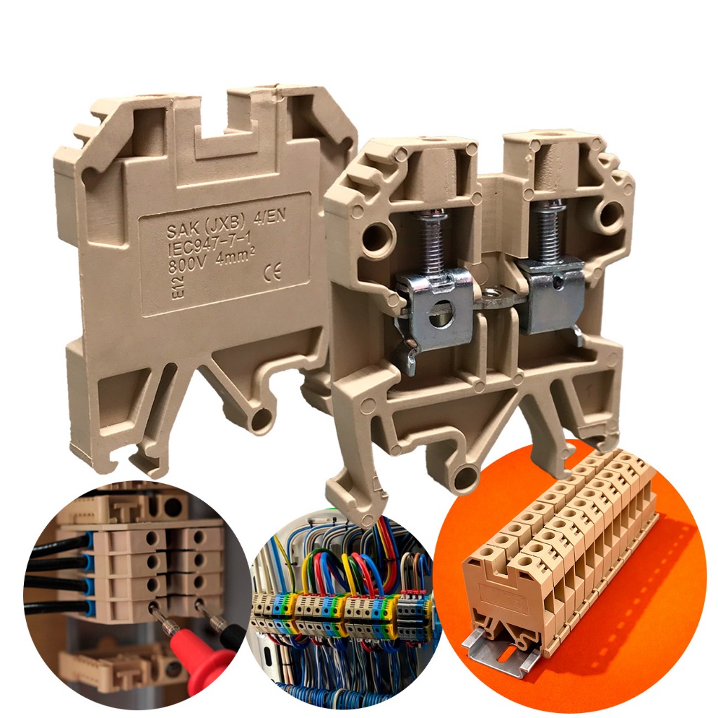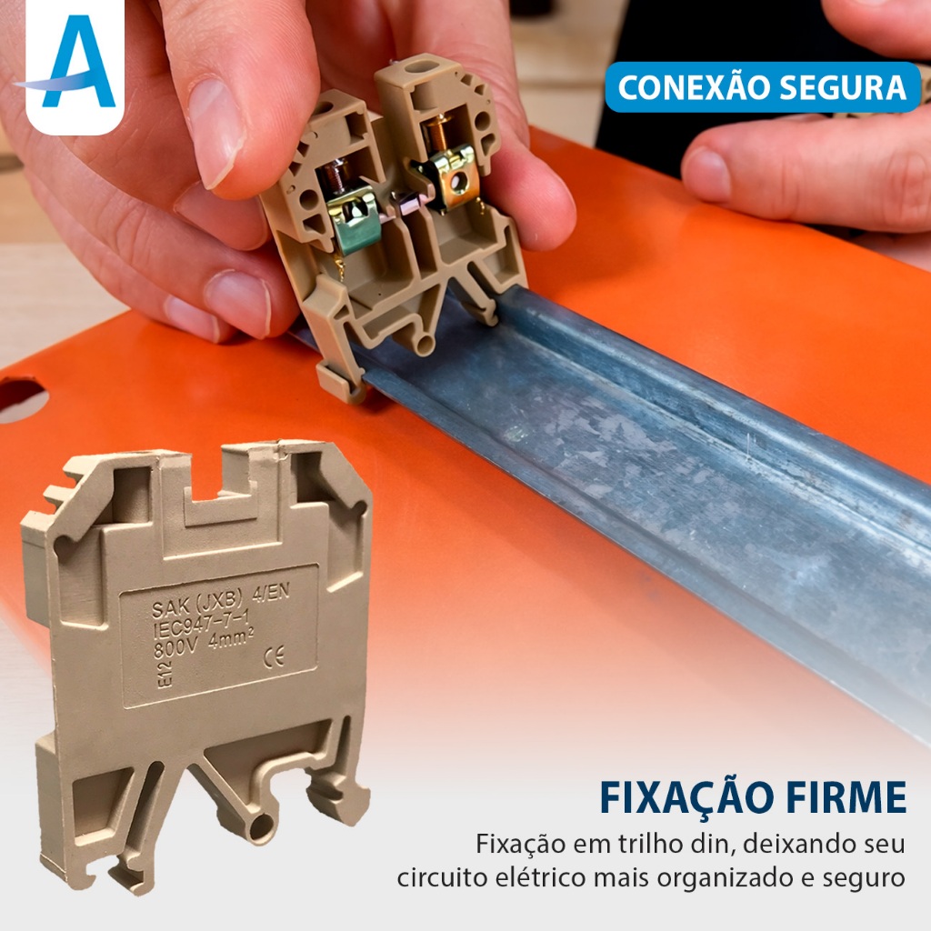 Kit 5un Conector Borne Sak de passagem 4mm Bege Saki Elétrico Fixação Trilho Din Conexão Circuitos