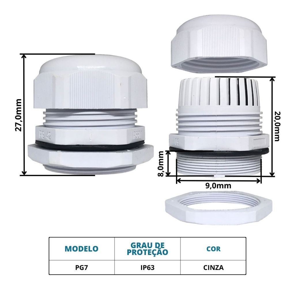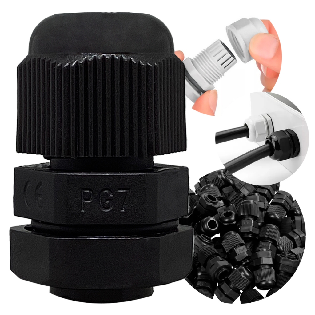 Kit 10 Prensa Cabo Pg 7 1/4 Vedação de Entrada de Fios em Caixas Condutor em Rosca Cinza Ou Preto