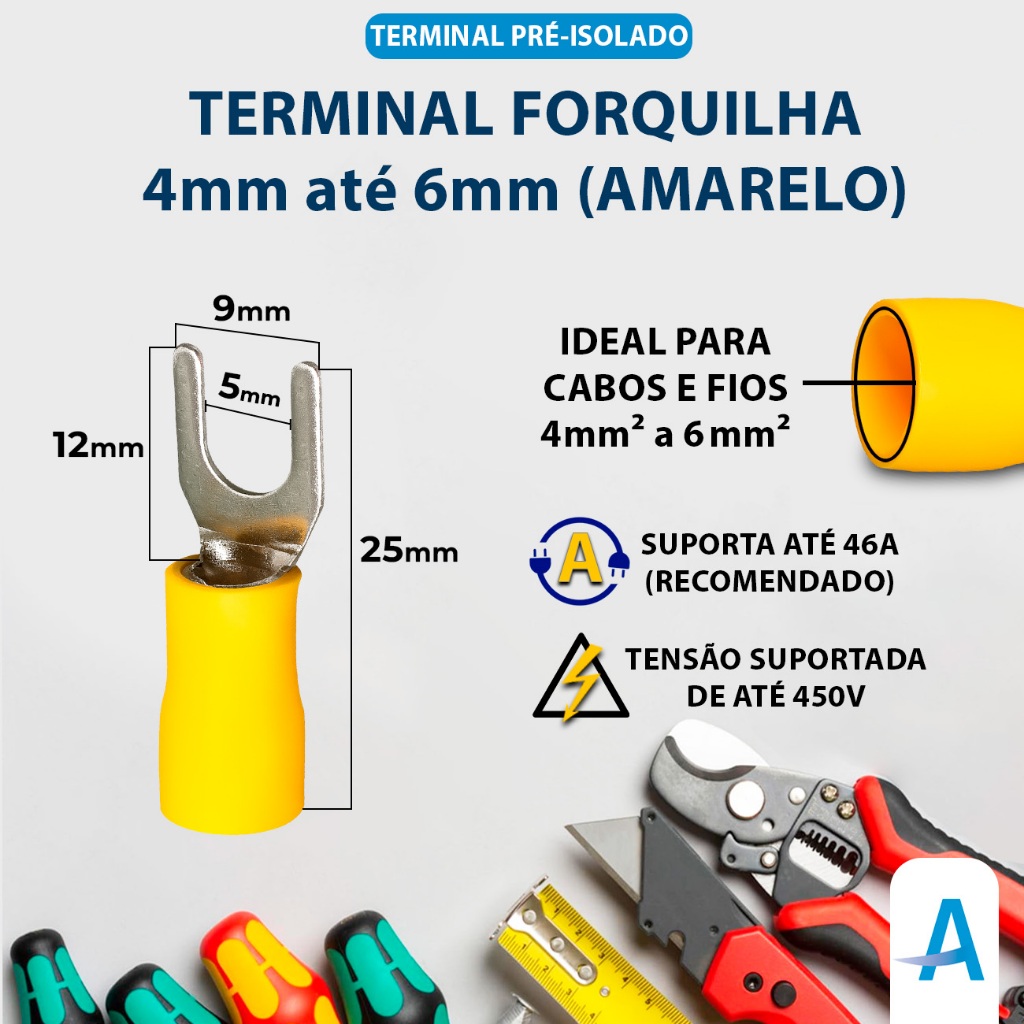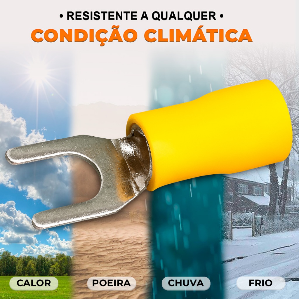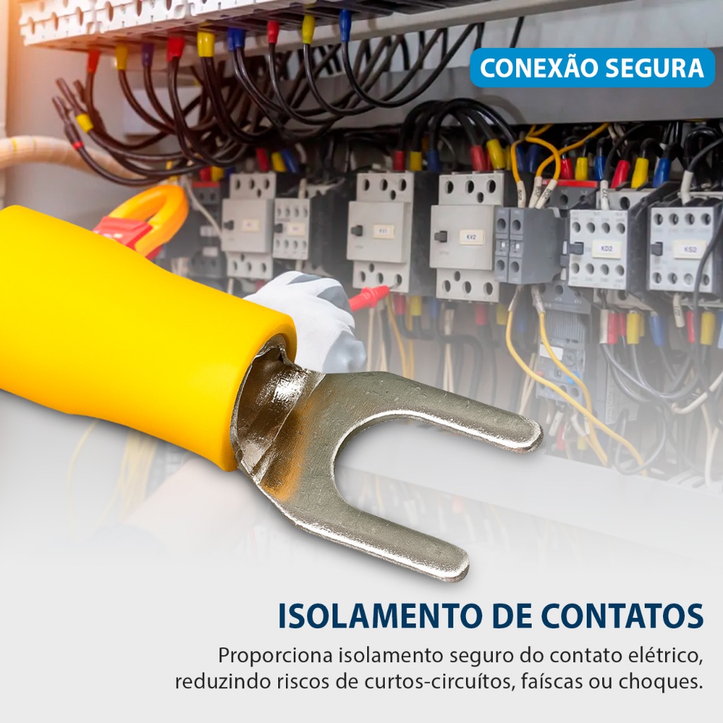 Kit 200 Terminal Forquilha Garfo Pré-isolado 4mm Até 6mm Amarelo Conector Eletrico para Cabos e Fios