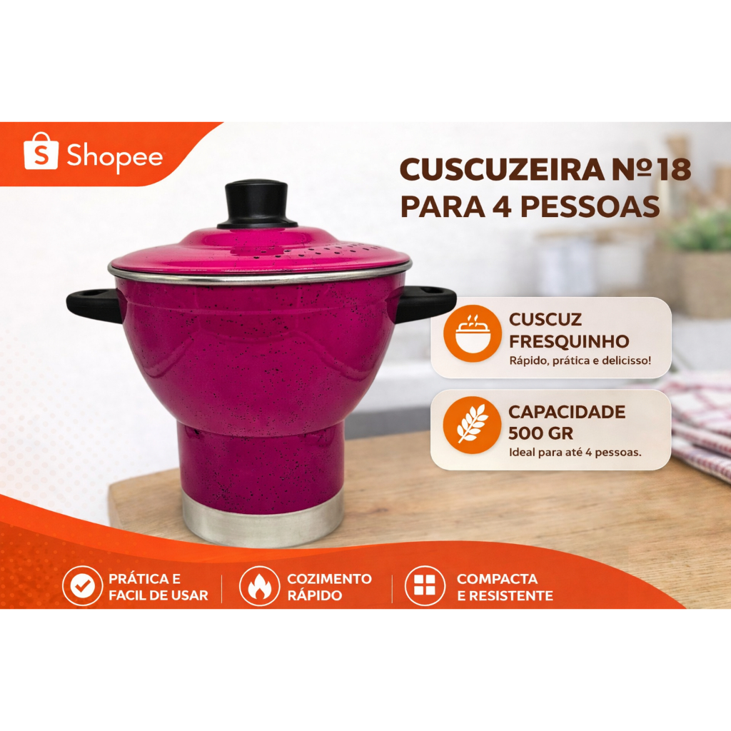 Cuscuzeira Grande Nordestino nº 18 cm Alumínio Colorido para 4 Porções (cuscuzeiro)