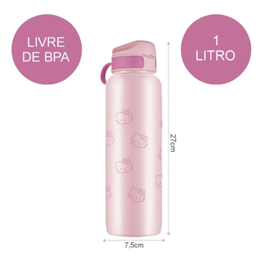 Squeeze Garrafa Hello Kitty 1 Litro Plástico BPA Free Lancheira Academia