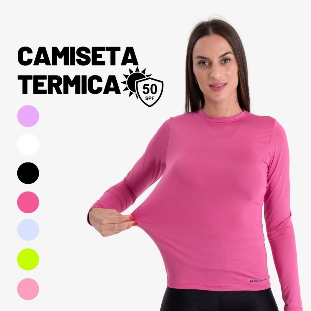 Camiseta Feminina Térmica Proteção UV 50+ Blusa Manga Longa Camisa Malha Fria Segunda Pele Unissex