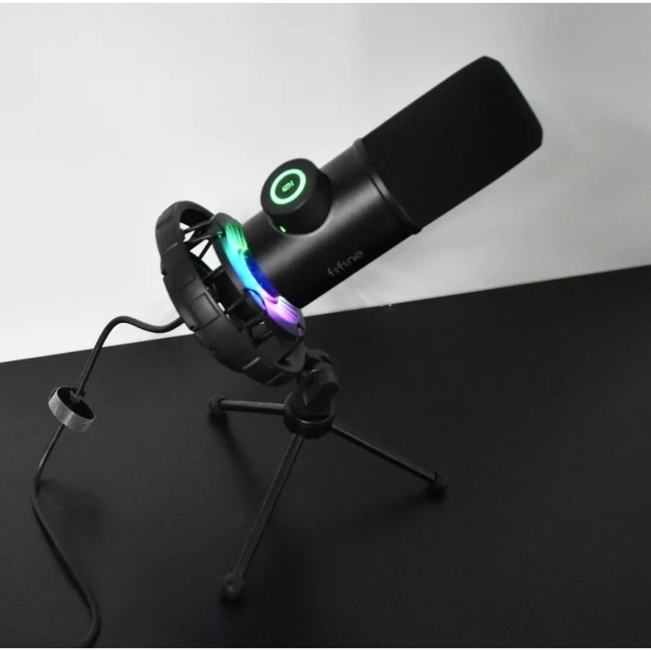 Microfone Gamer Profissional Cardioide Iluminação Led Rgb Fifine K658 Preto