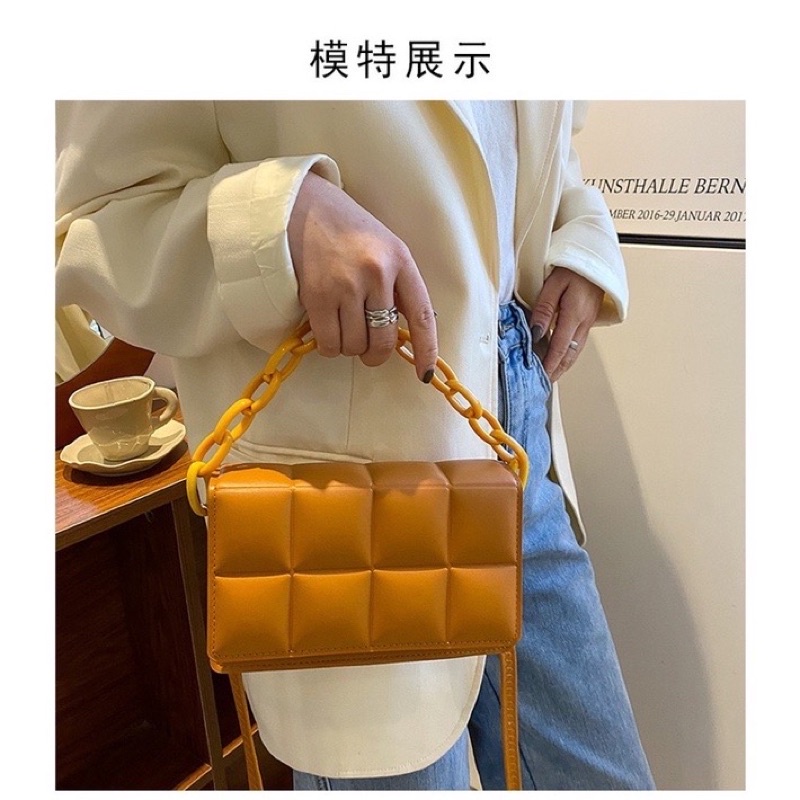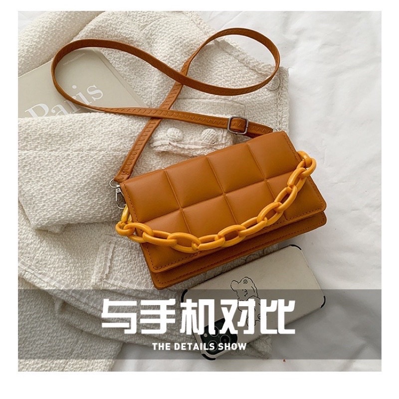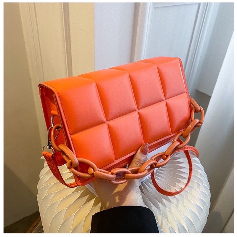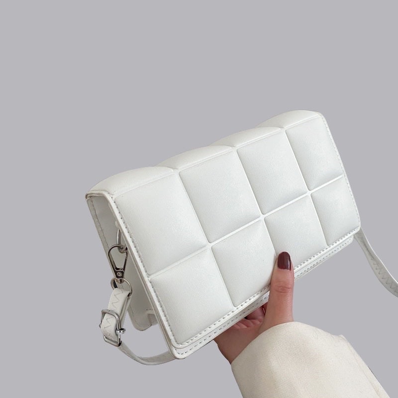 bolsa feminina transversal crossbody passeio couro sintético “quadrados”