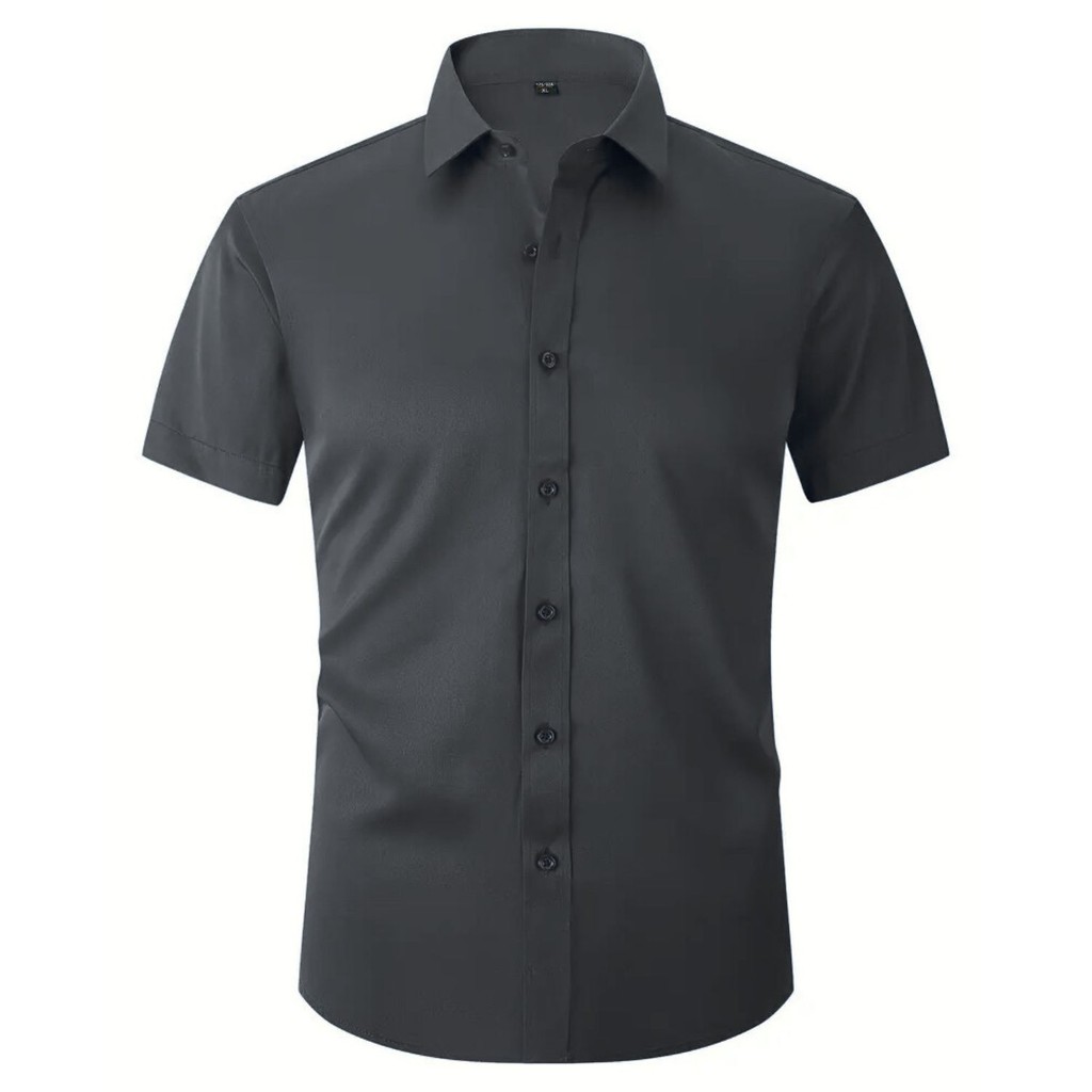 Camisa Social Masculina Slim Fit com Elastano – Manga Curta e Sem Amassados