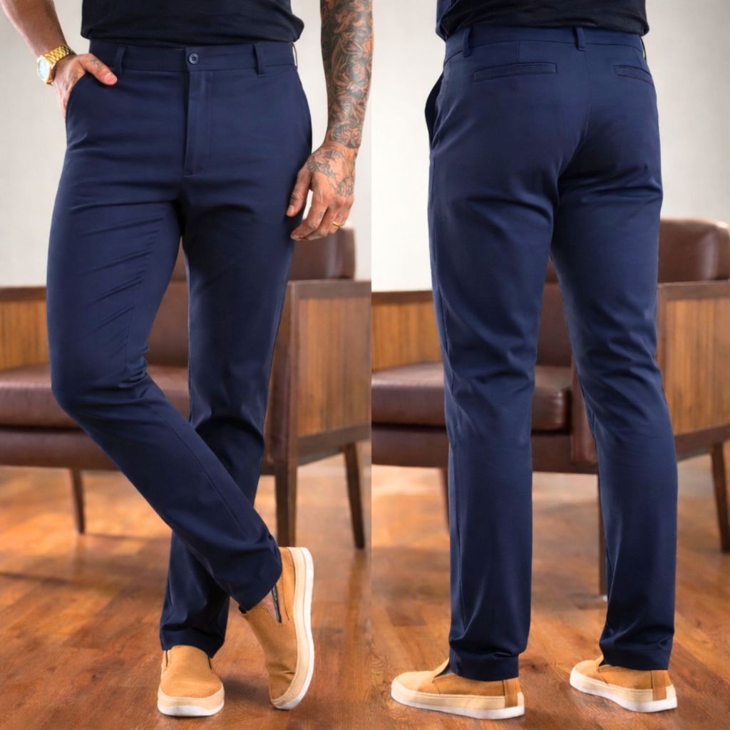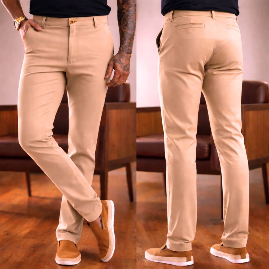 Calça de Sarja Alfaiataria Masculina Esporte Fino Chino com Bolso Embutido
