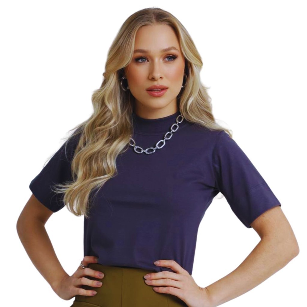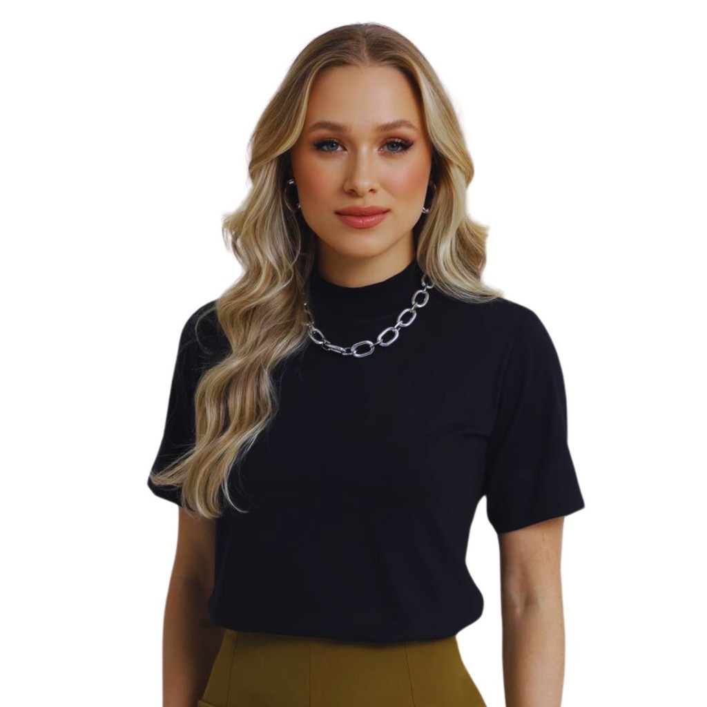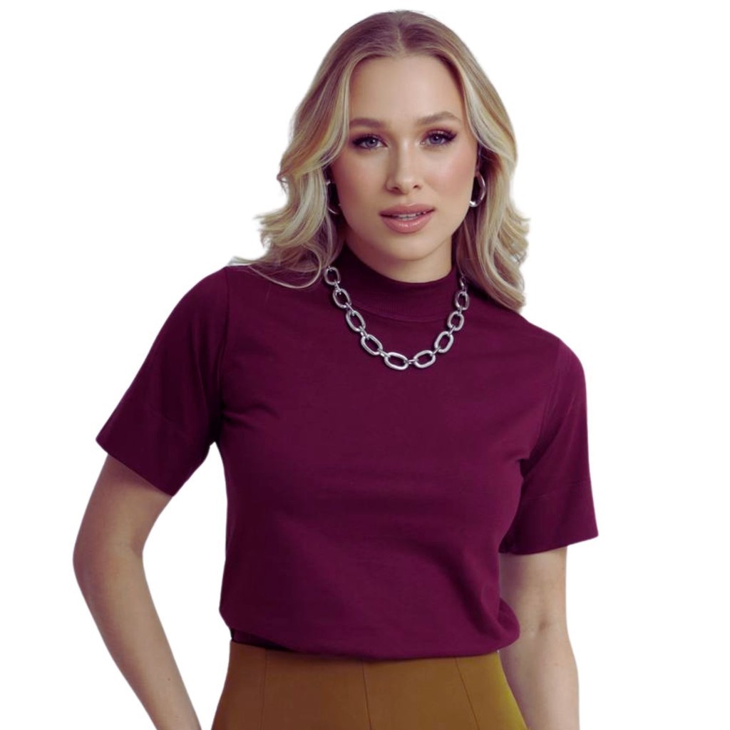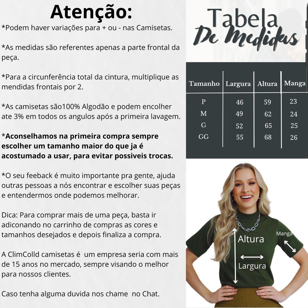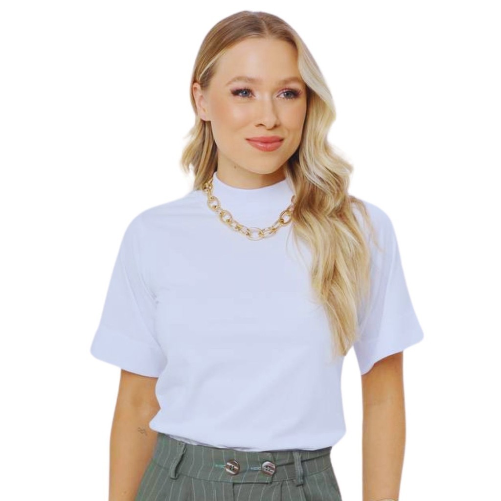 T-Shirt Feminina Camiseta Gola Alta Blusa 100% Algodão