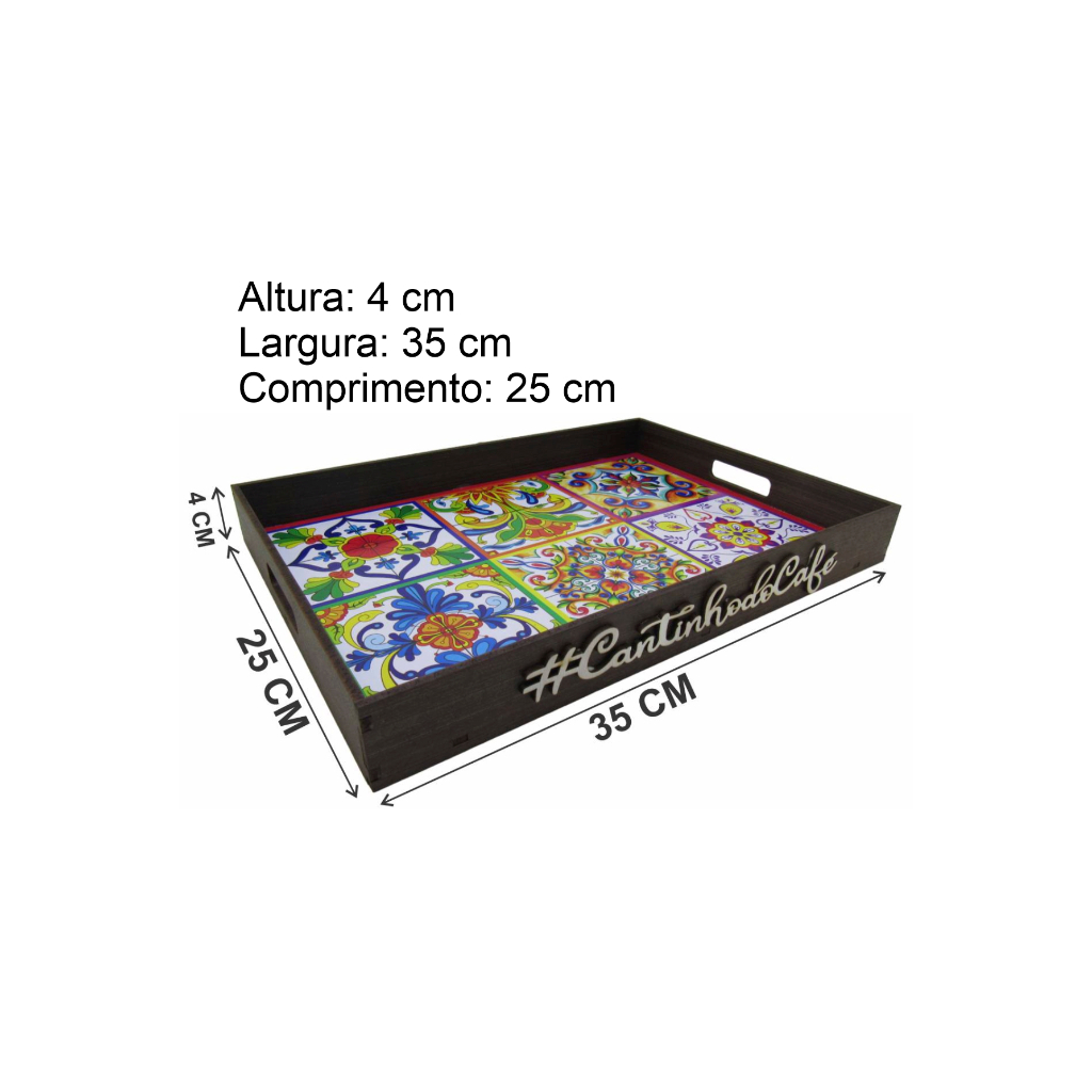 Bandeja Super Luxo Marrom Azulejo 35x25x4 Cantinho Do Café