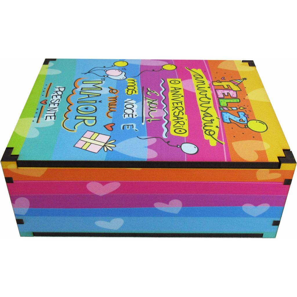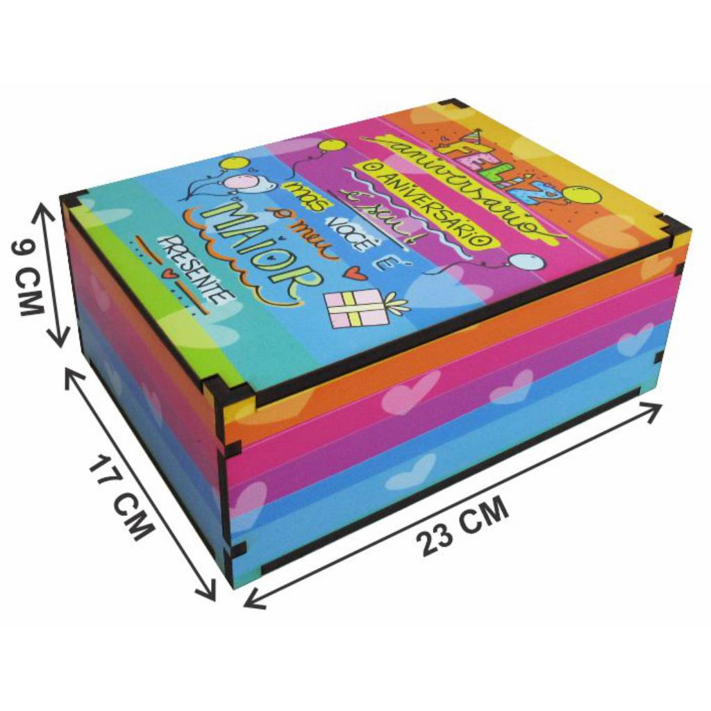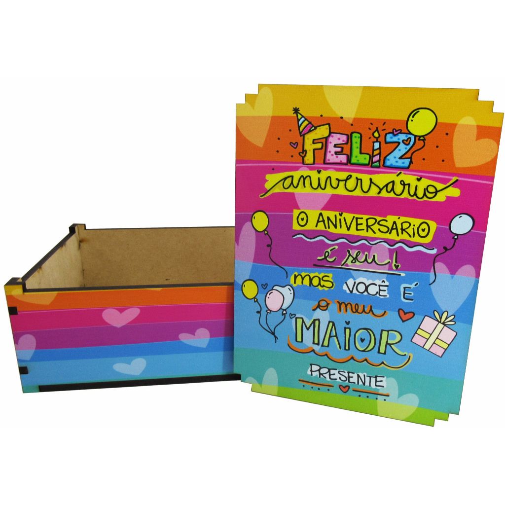 Caixa Presente Decoração Feliz Aniversário 23x17x9 Mdf