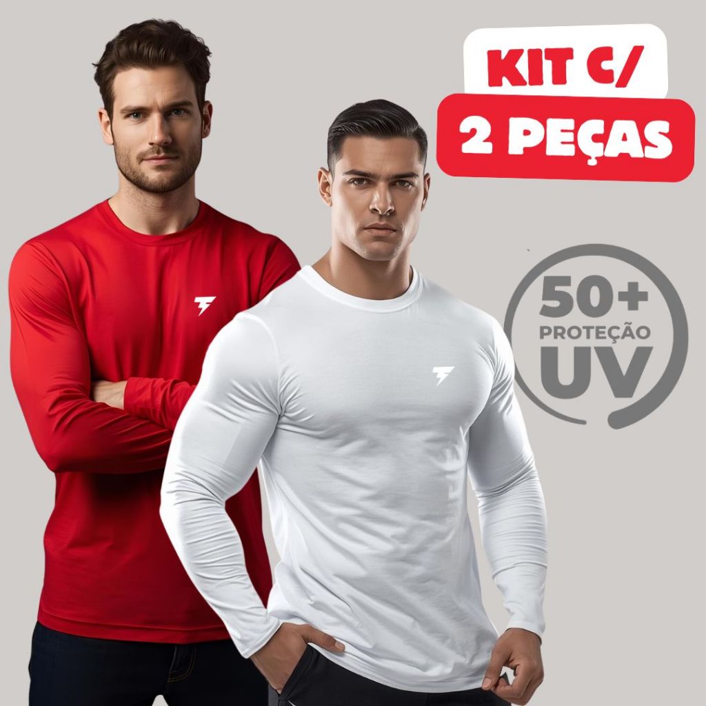 Kit com 2 Camisetas Manga Longa Uv Segunda Pele Para Praia Corrida e Dia a Dia