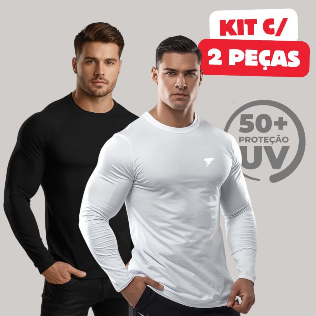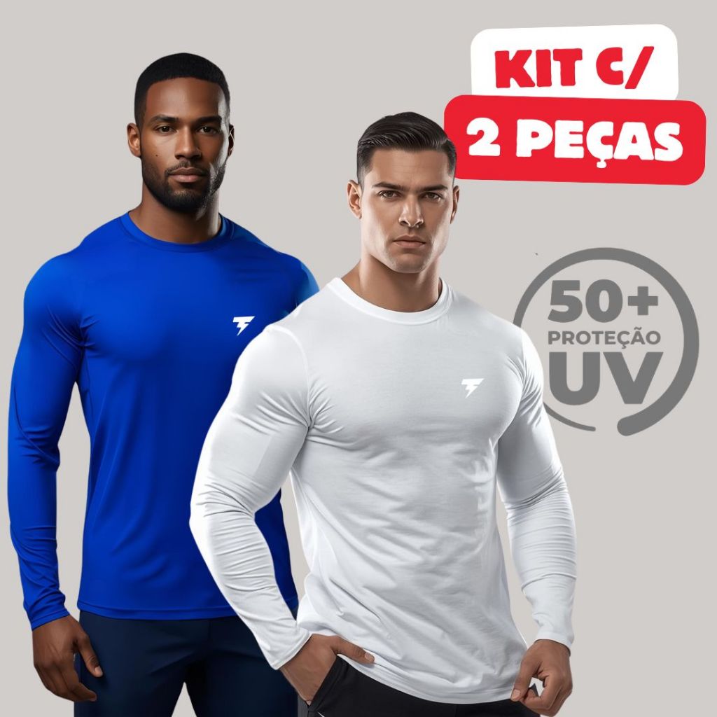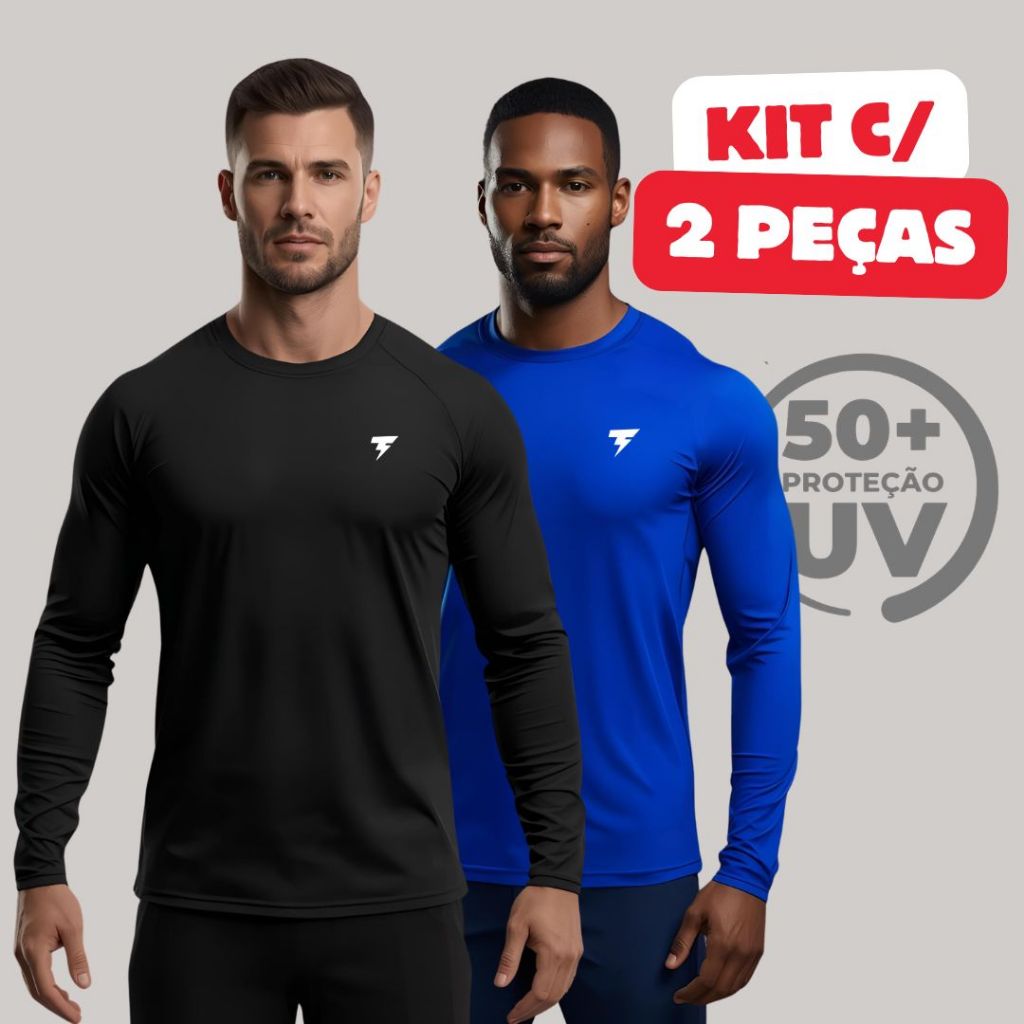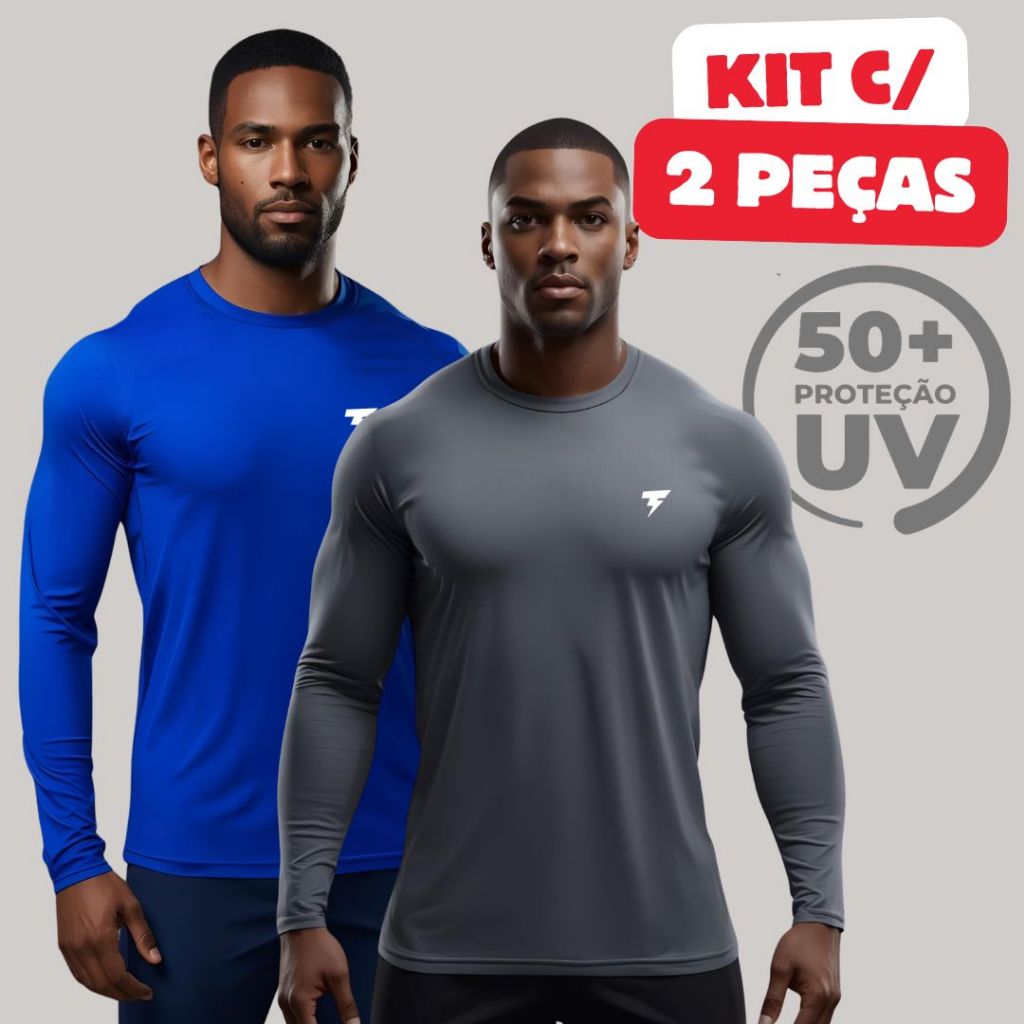 Promoção Kit com 2 Camisa Termica Manga Longa UV50+ Malha fria Academia Corrida Símbolo Refletivo