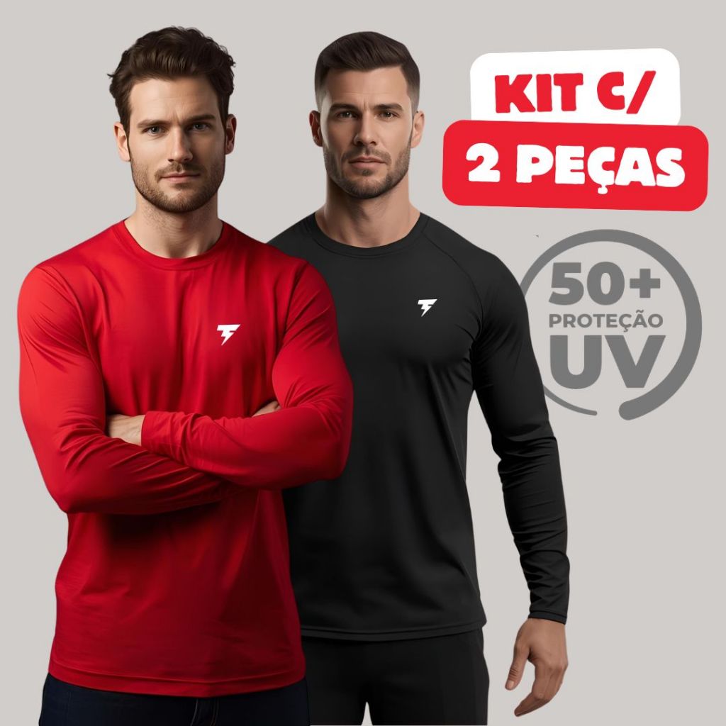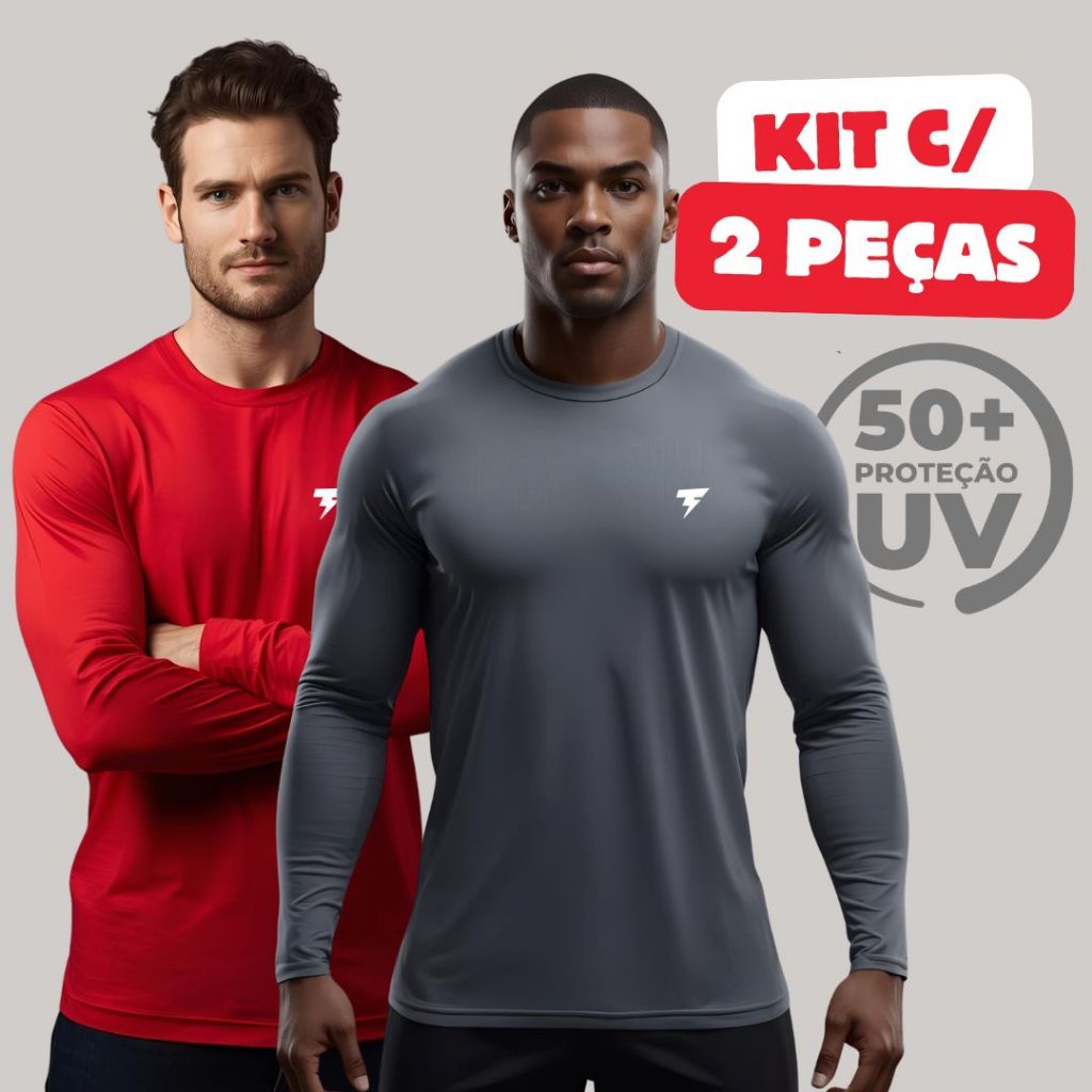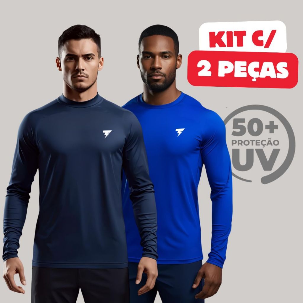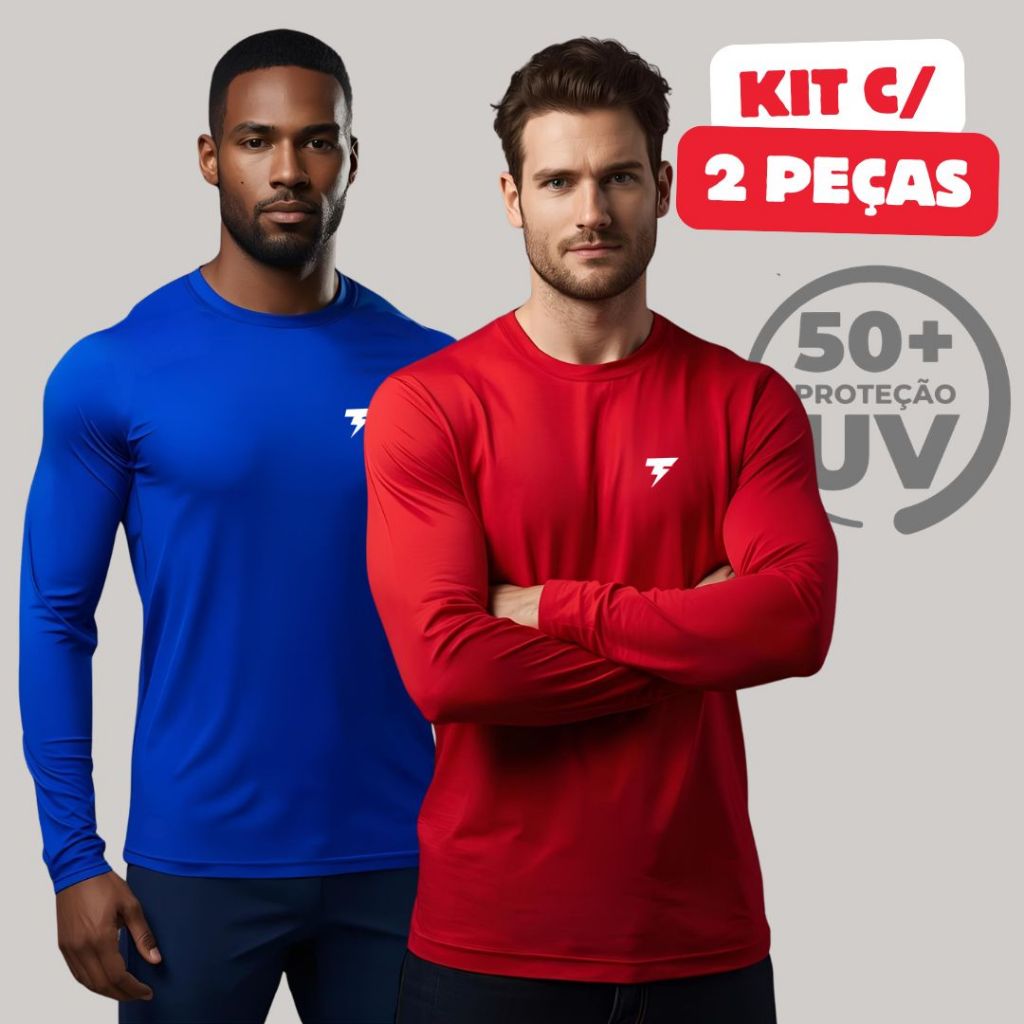 Promoção Kit com 2 Camisa Termica Manga Longa UV50+ Malha fria Academia Corrida Símbolo Refletivo