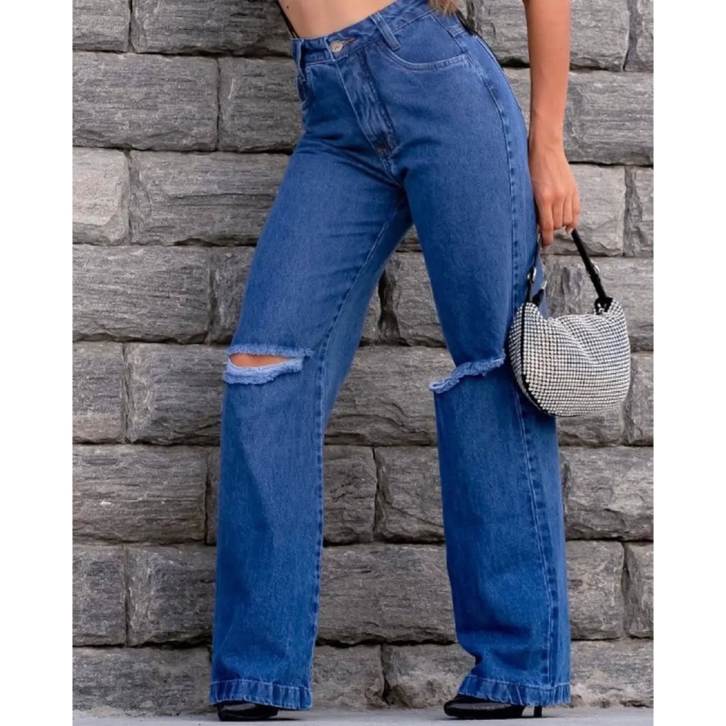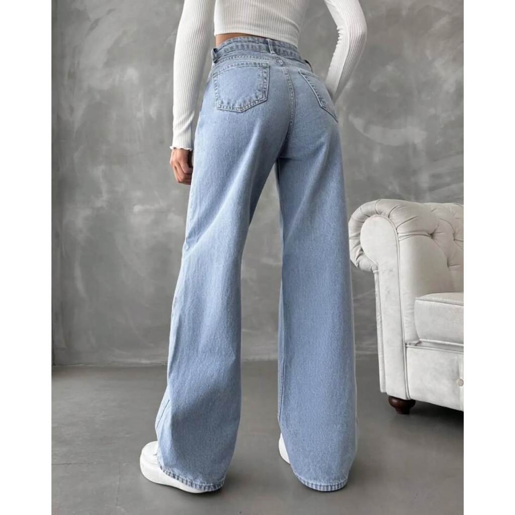 "Calça Jeans Wide Leg Grafite - Cintura Alta com Efeito Empina Bumbum | Super Tendência