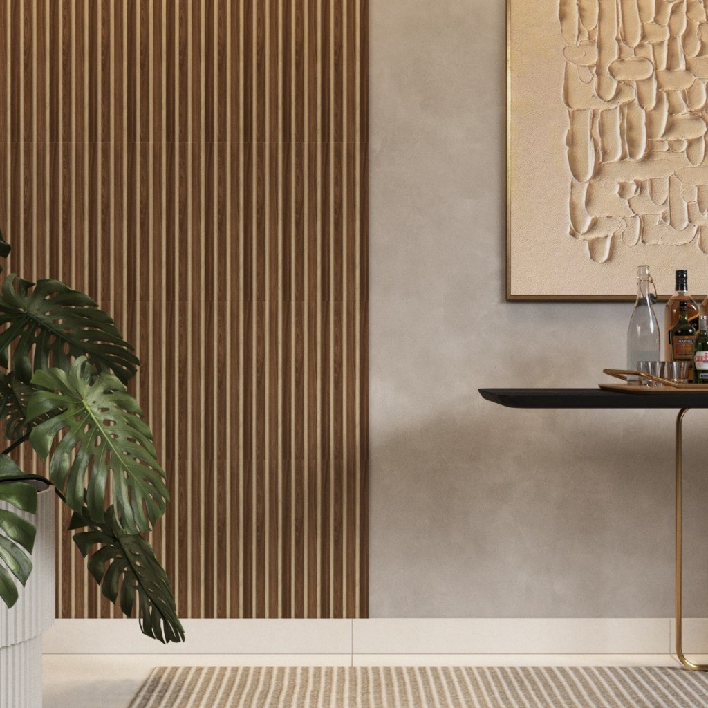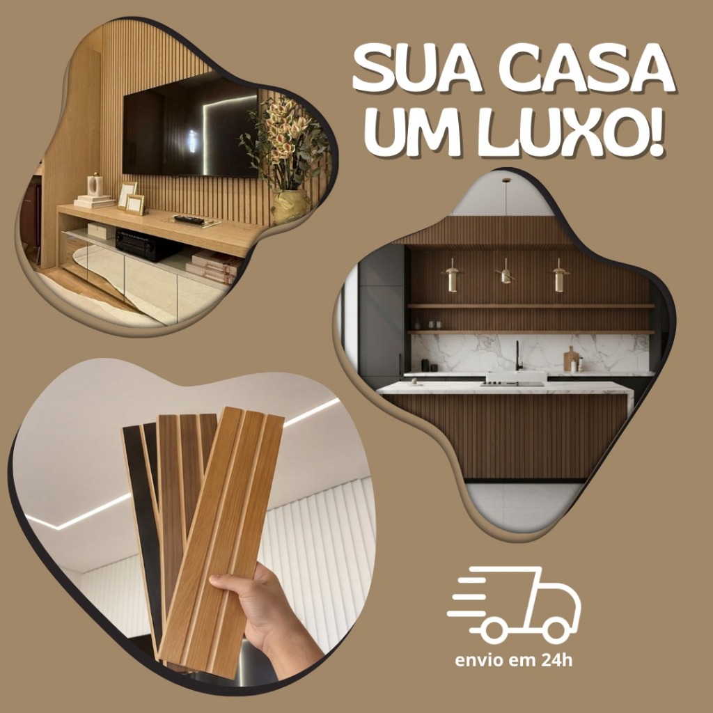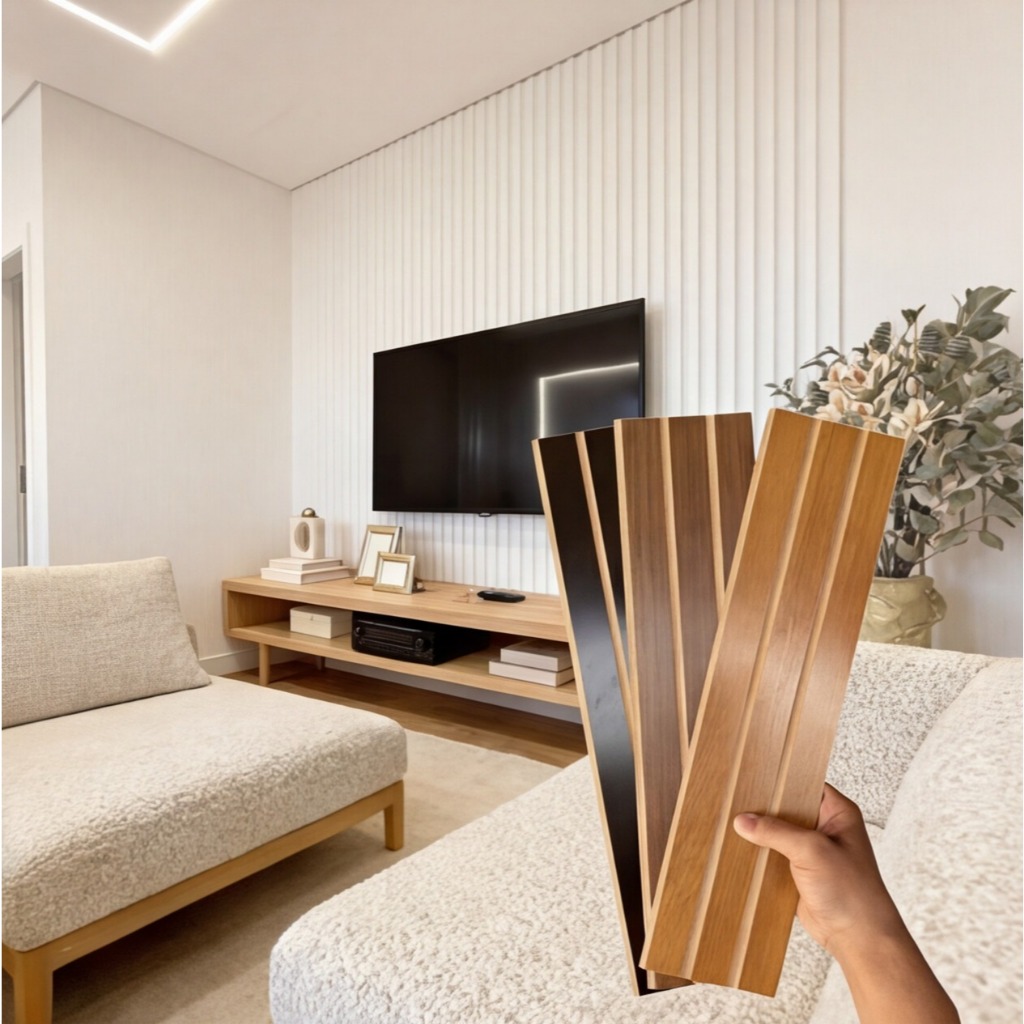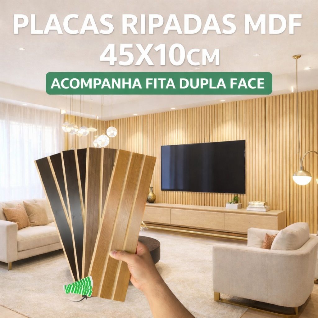 Kit 10 Até 200 Placas Painel Ripado Premium Autocolante Decorativa MDF 45x10 Casa Parede Luxo Quarto
