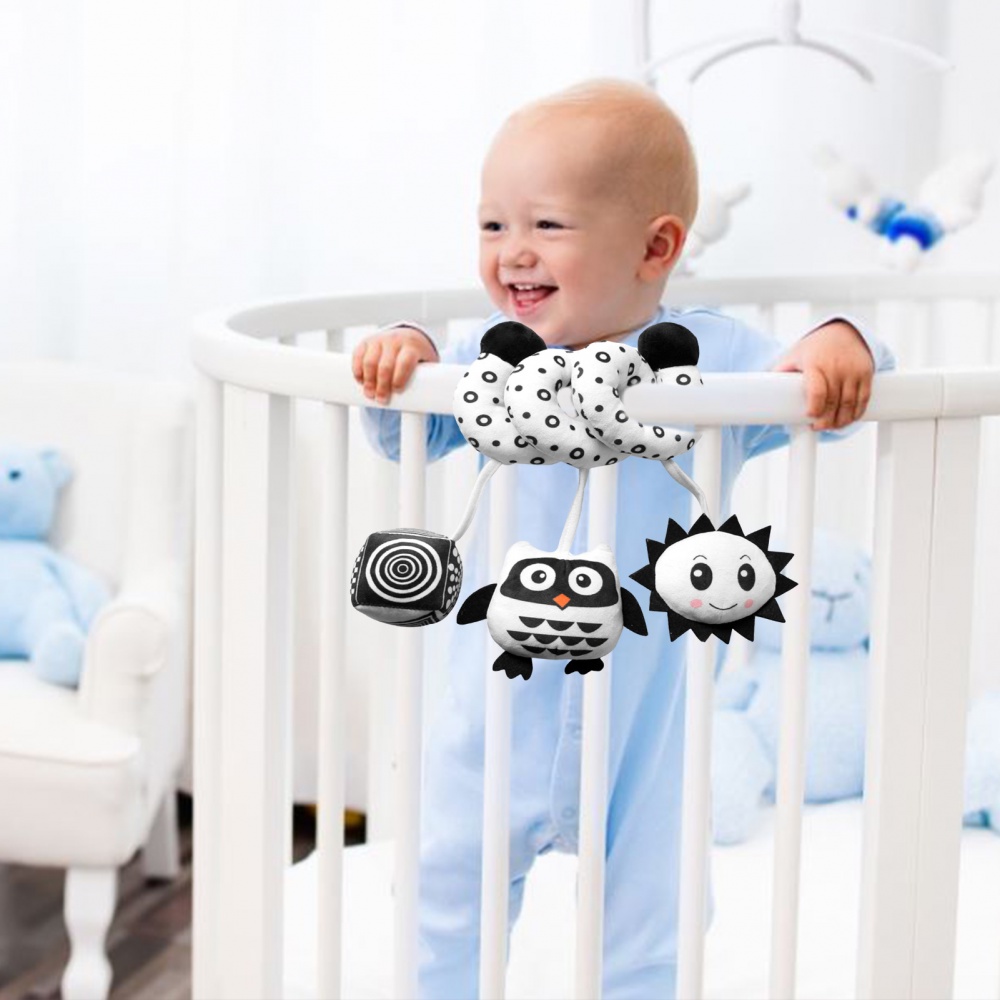 Brinquedos Suspensos Para Assento De Carro/Berço Móvel , De Pelúcia Espiral De Bebê , Animal Dos Desenhos Animados Winding Chocalhos , Preto & Branco Brinquedo Embutido BB E Papel De Som
