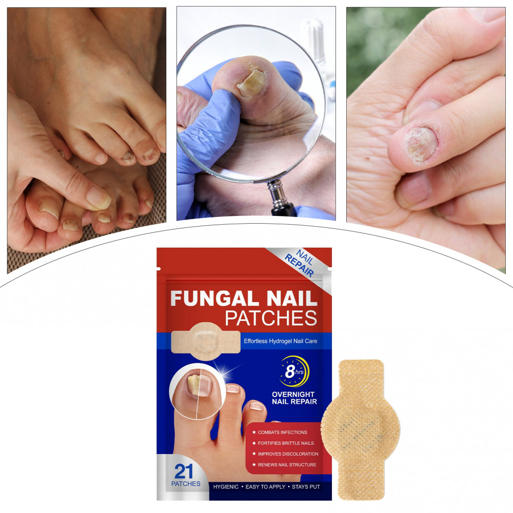 21 Pcs Remendo De Fungo De Unha Renovação Noturna Remendos De Reparo De Unhas Ferramenta De Cuidados De 8 Horas Para Des