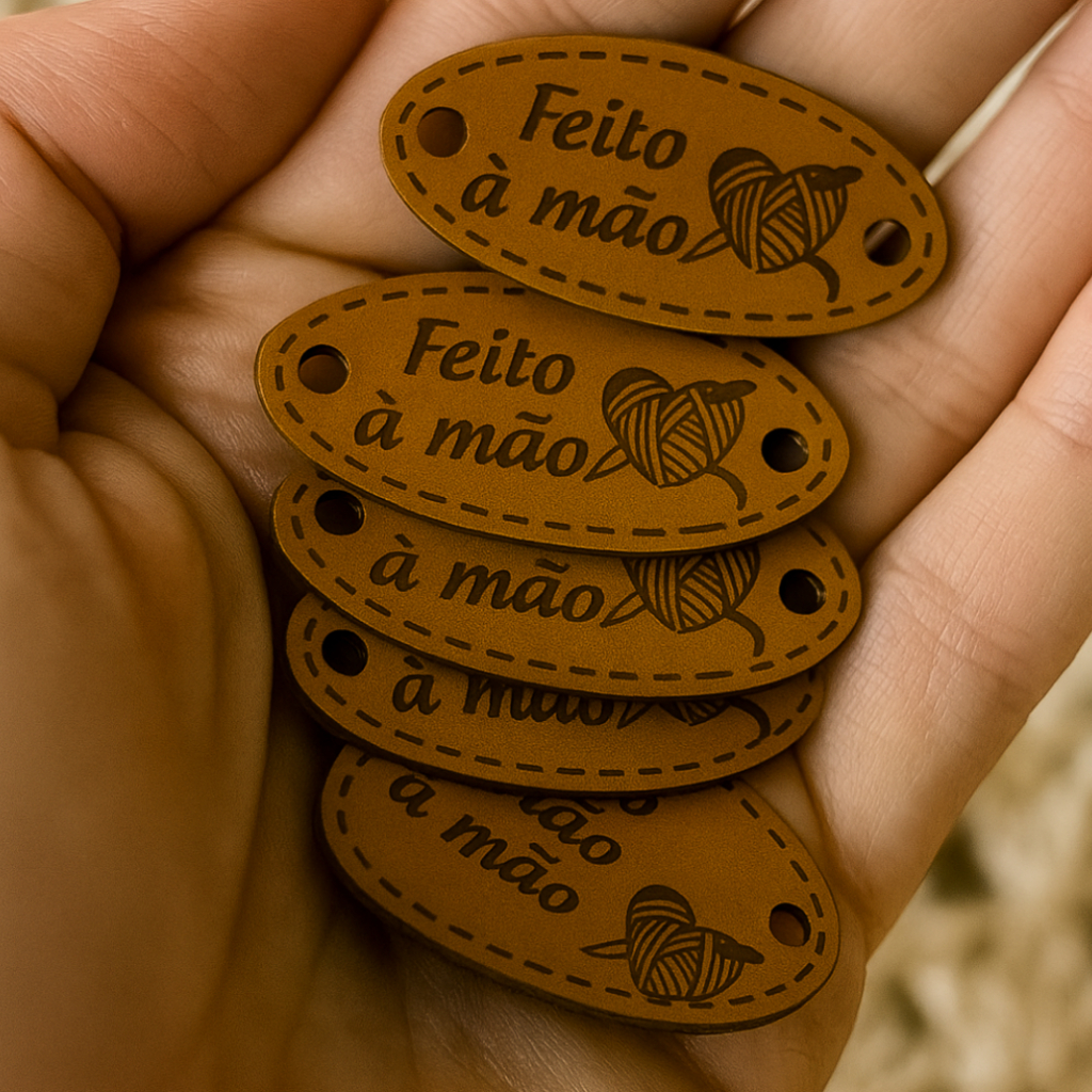 Promo Etiquetas Couro Oval Feito À Mão Gravado a laser 3x1,5cm