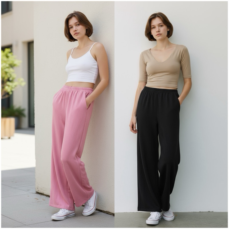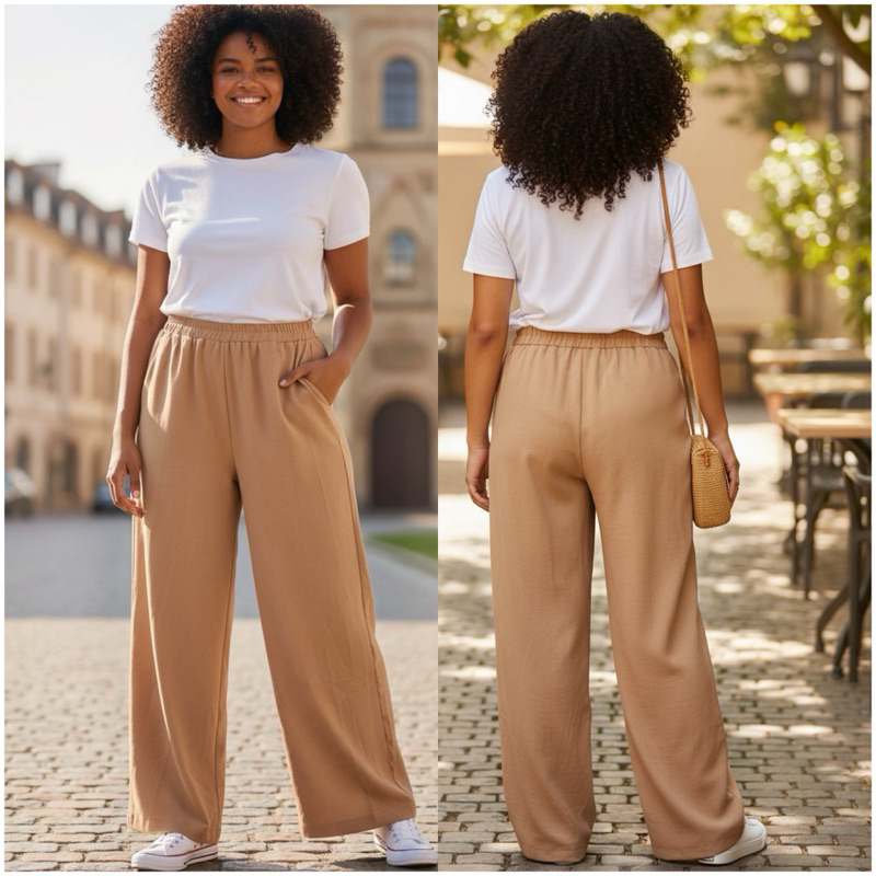 Calça Pantalona Feminina Tecido Confortável e Leve Estilo Casual