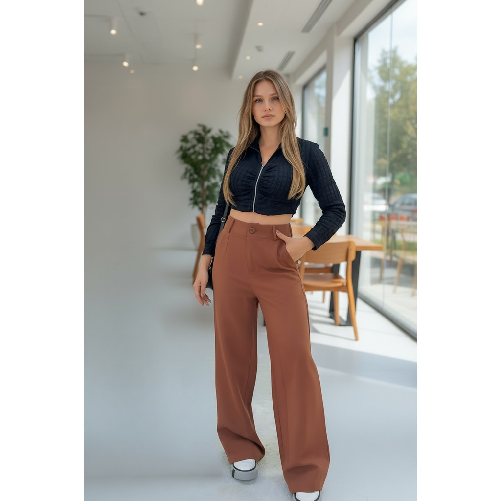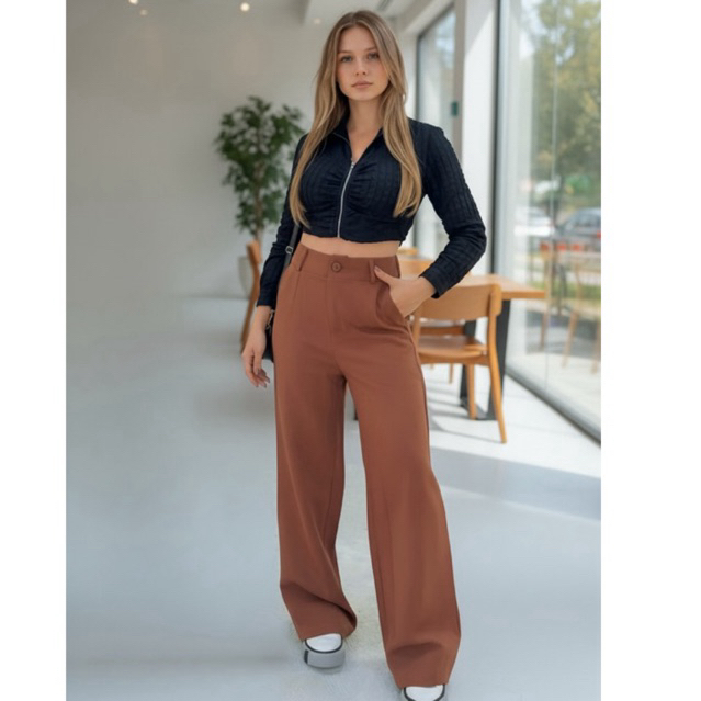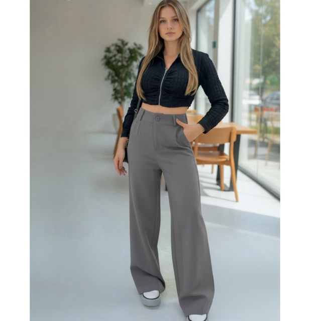Calça Pantalona Alfaiataria Premium Com Bolso Wide Leg PROMOÇÃO