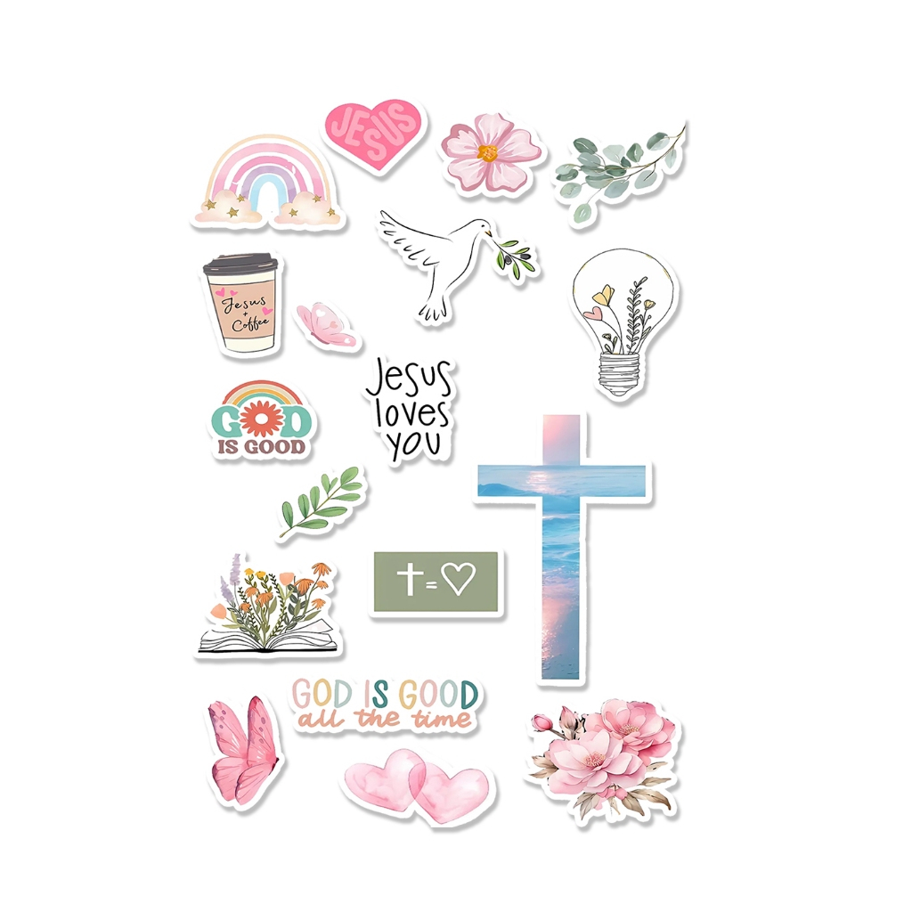 Cartela de Adesivos Fofo Jesus Garota Cristã Sticker Para colar em Garrafinhas Cadernos e Bíblias 18 Unidades