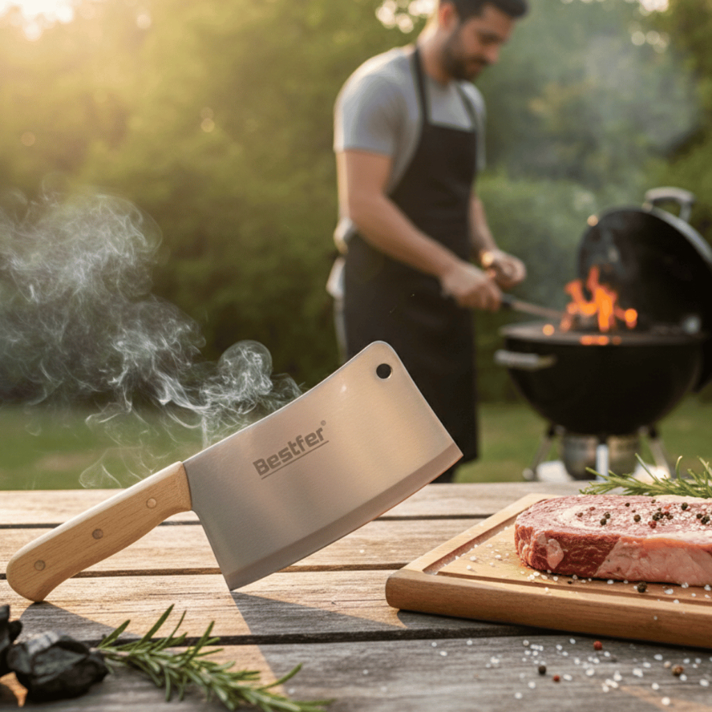 Faca Cutelo Profissional 7¼” Bestfer Aço Manganês Full Tang Cabo Madeira