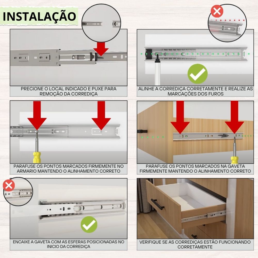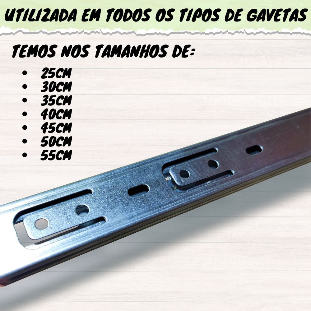 10 Corrediça Telescópica 40cm – 400mm 5 PAR Gaveta Moveis Armário Trilho Zincada Reforçada Corredica Gavetas Armario 5