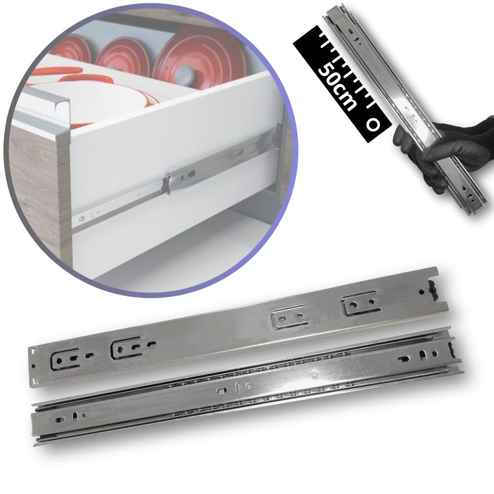 4 Corrediça Telescópica 50cm – 500mm 2 PAR Gaveta Moveis Armário Trilho Zincada Reforçada Corredica Gavetas Armario 2