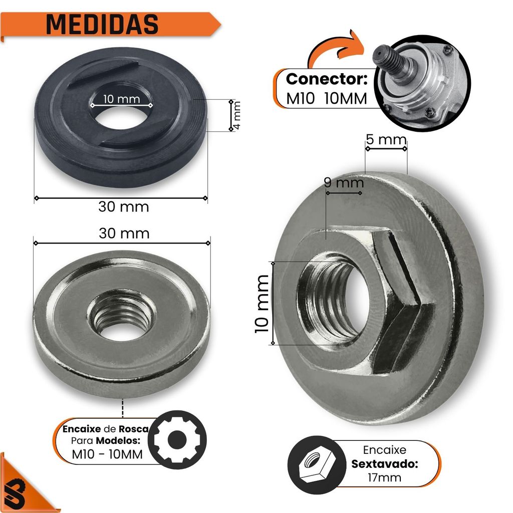 Porca Flange Rosca Aperto M10 Esmerilhadeira Lixadeira Politriz Disco Rebarbadora Universal Sextavada Angular Trava Fixa