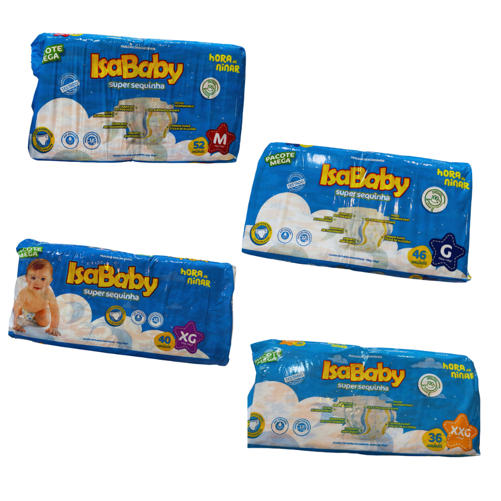Fralda Infantil Super Sequinha Mega M G XG XXG Fecho Ajustável Hipoalergênico Pacote Grande Proteção Prolongada IsaBaby